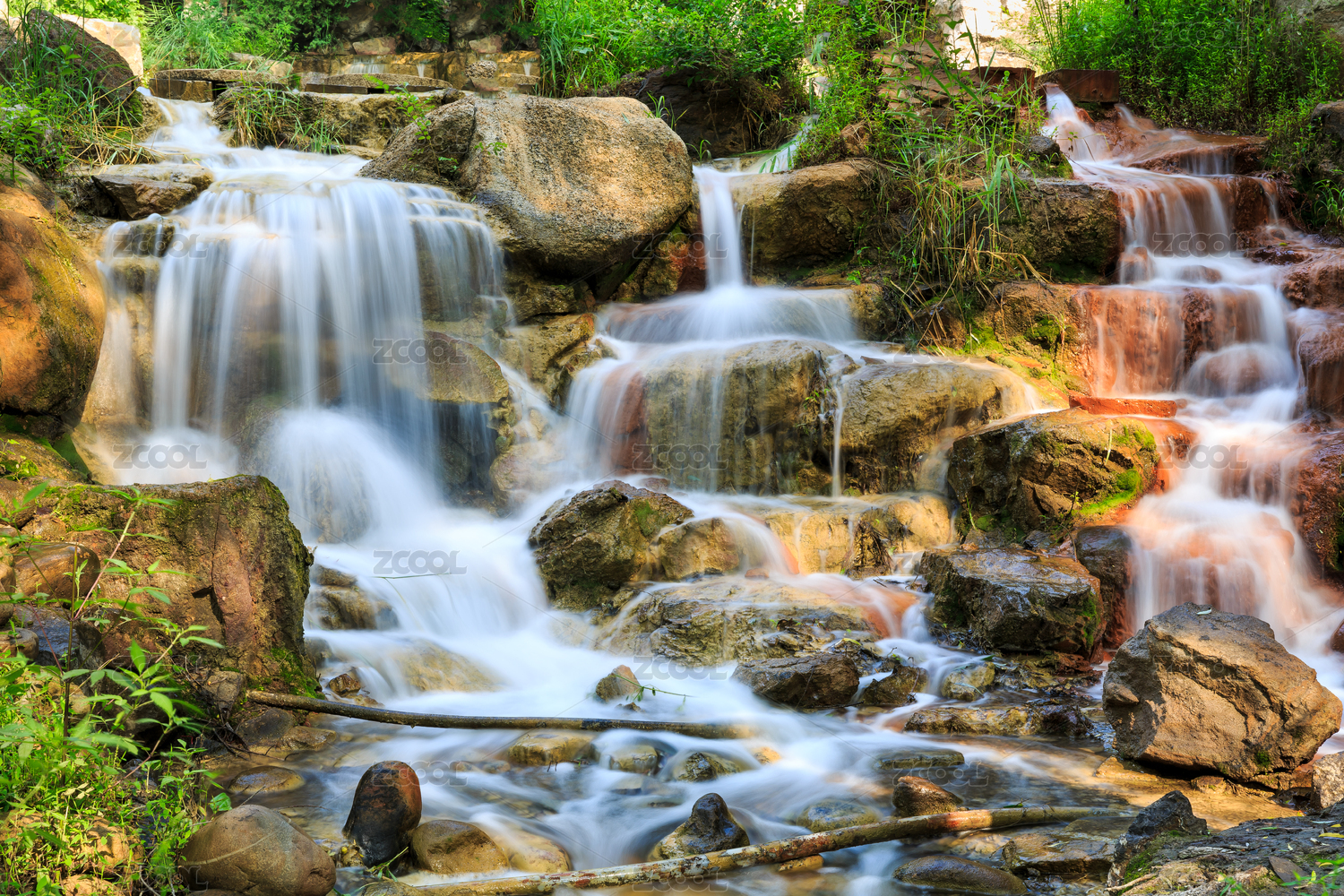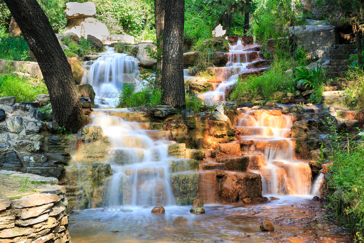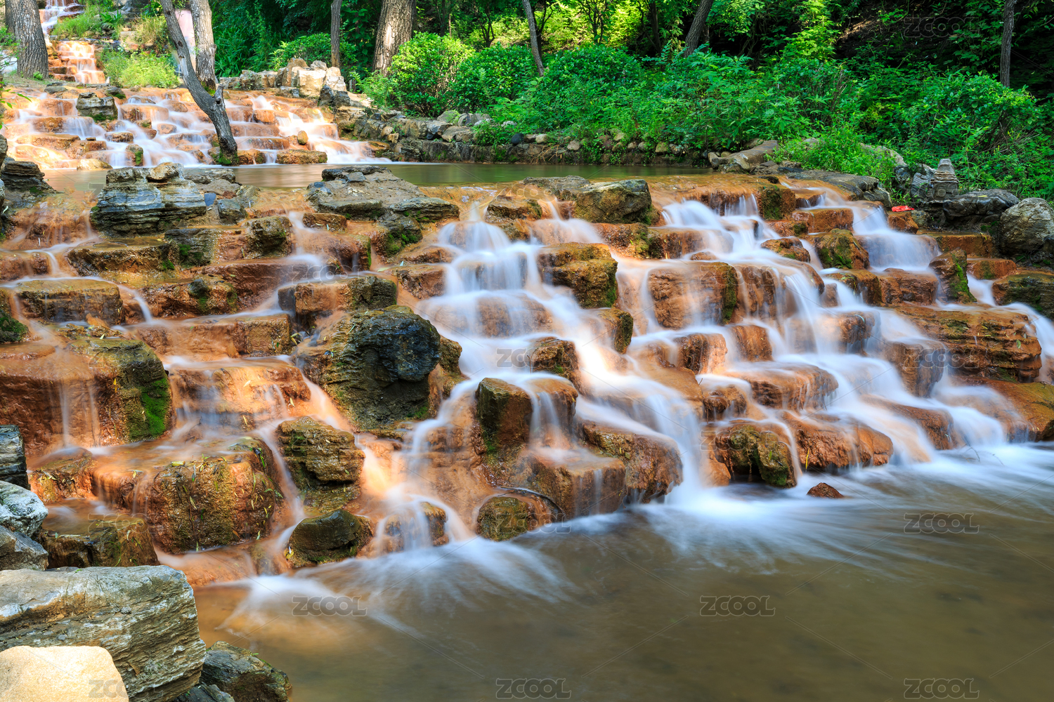 山西省太原蒙山大佛景区山涧溪流小瀑布景观