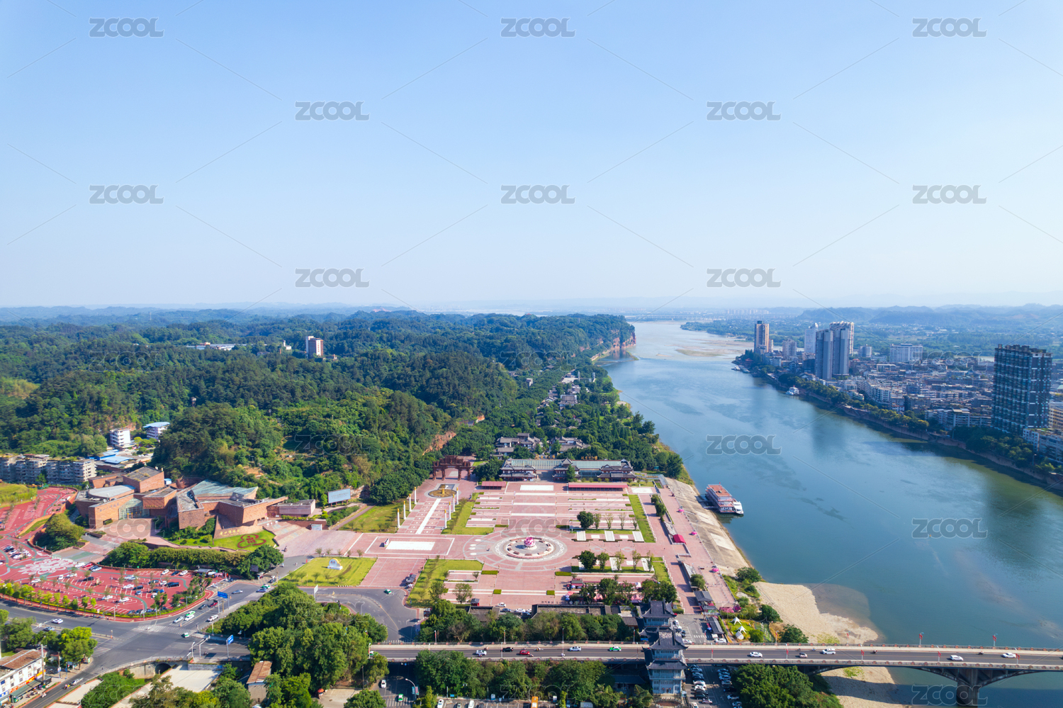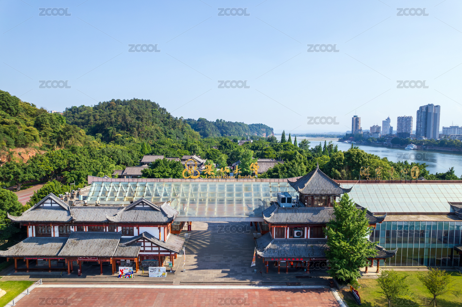 乐山大佛文化广场乐山大佛景区白昼航拍