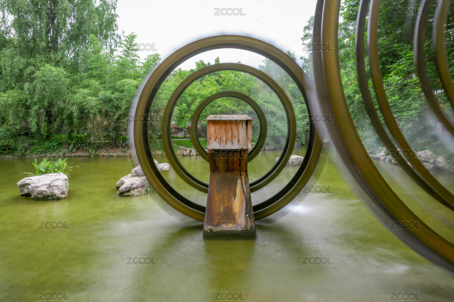 中国四川省乐山大佛景区嘉定坊的水车