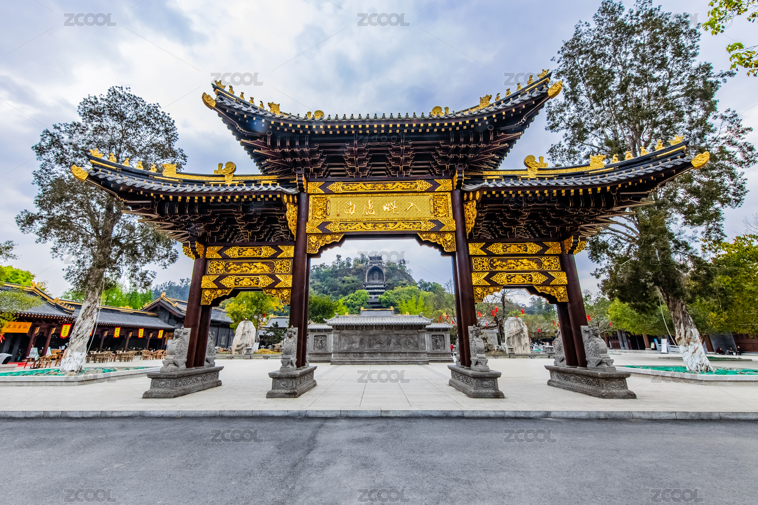 中国四川省荣县大佛景区牌楼园林建筑