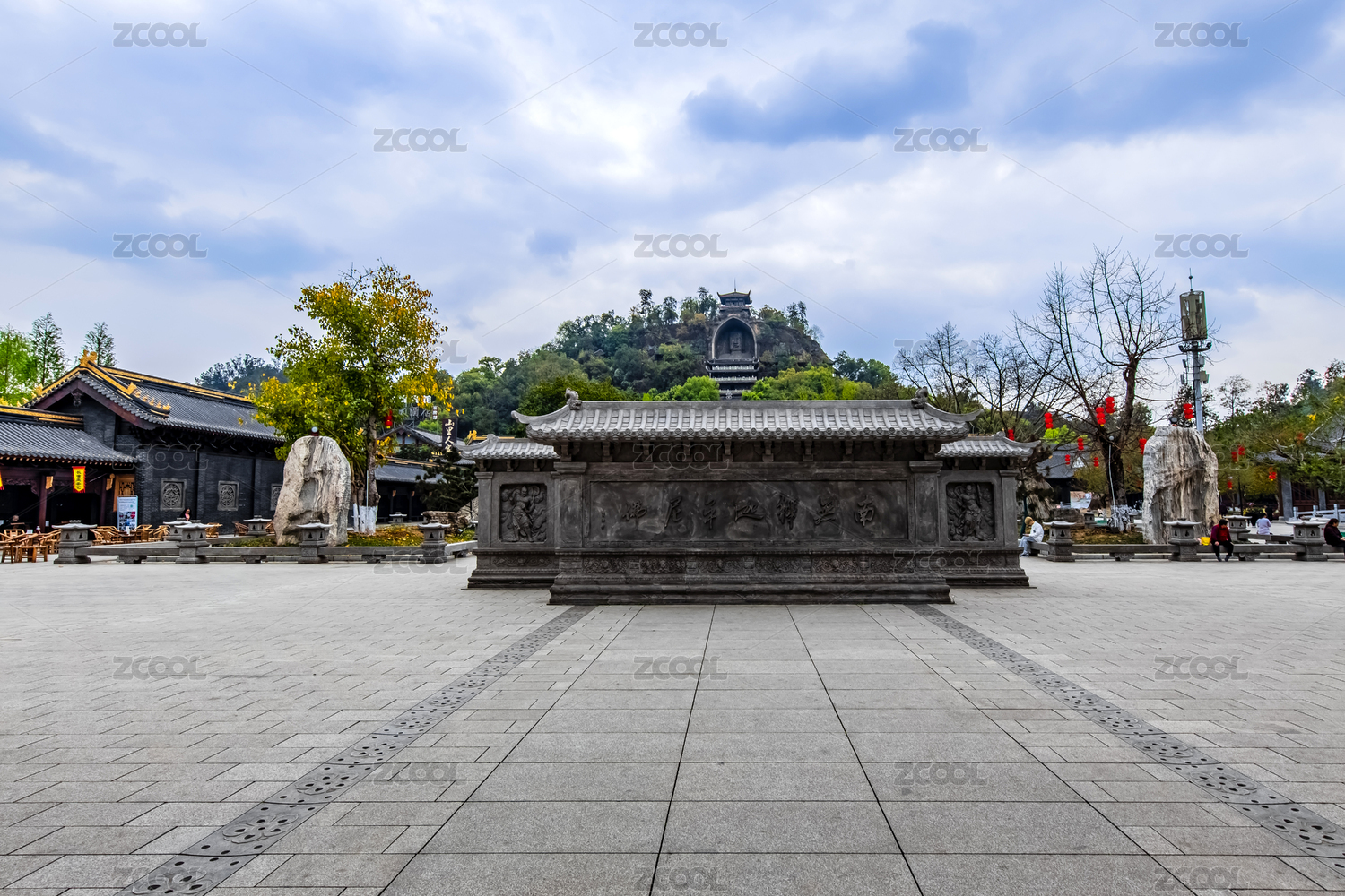 中国四川省荣县大佛景区照壁园林建筑
