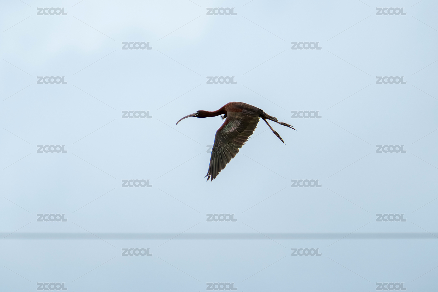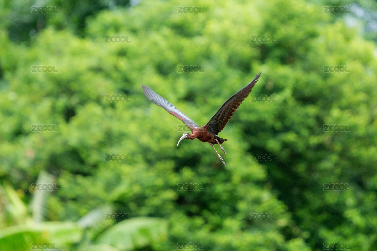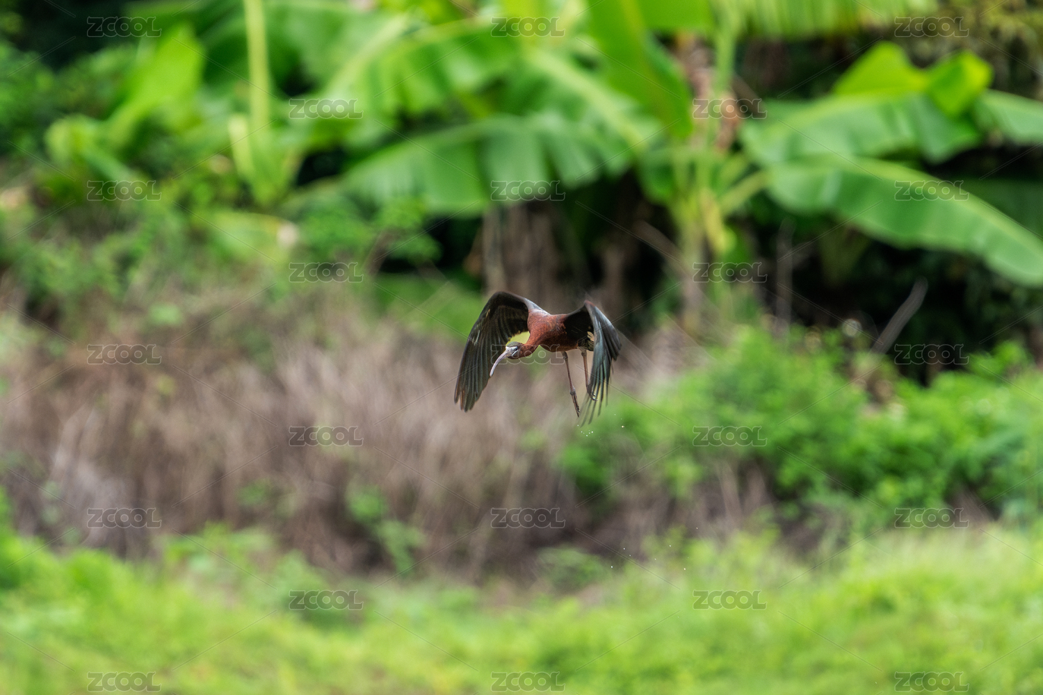 彩鹮鸟飞翔到湿地沼泽地区觅食
