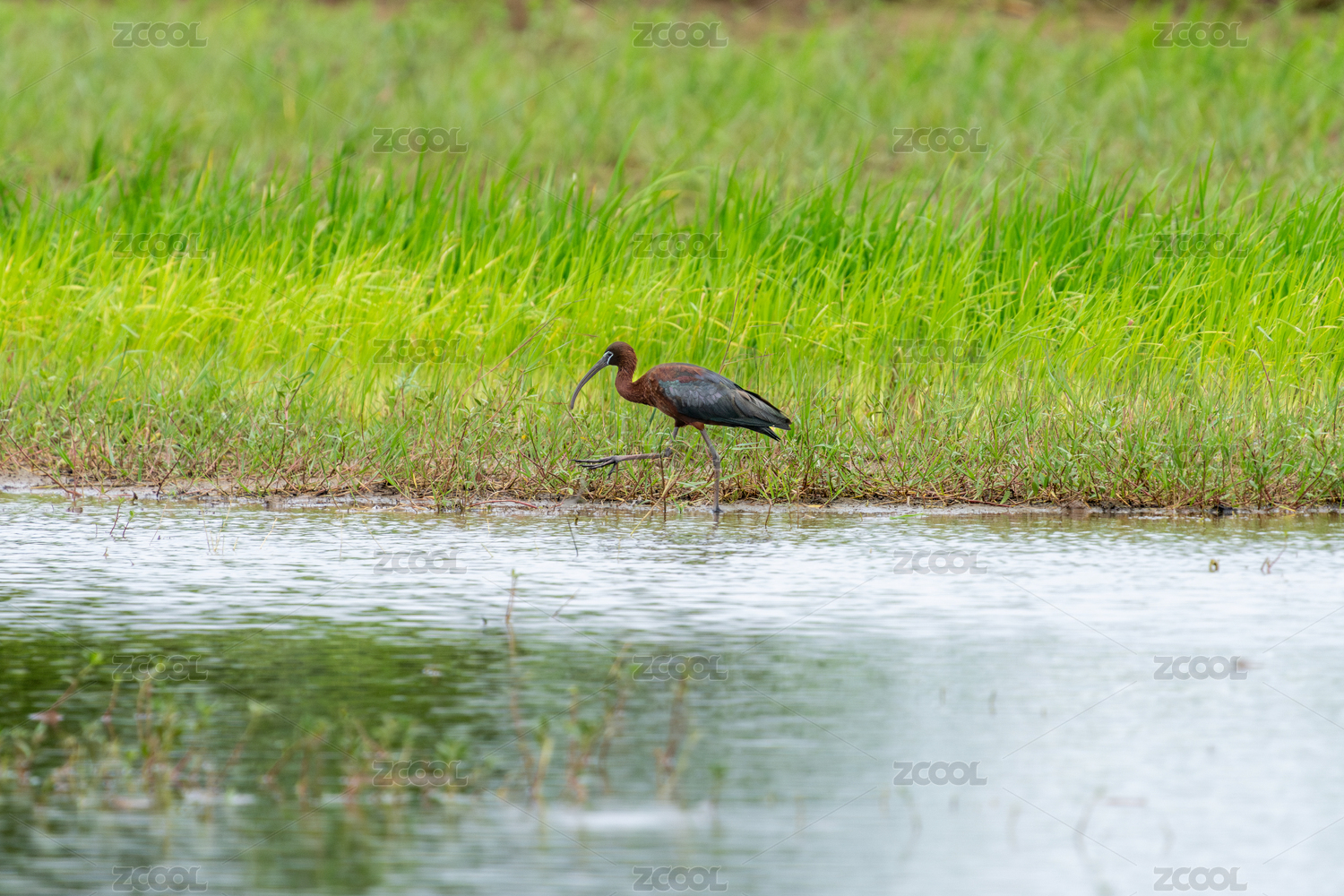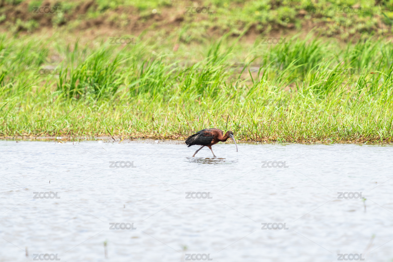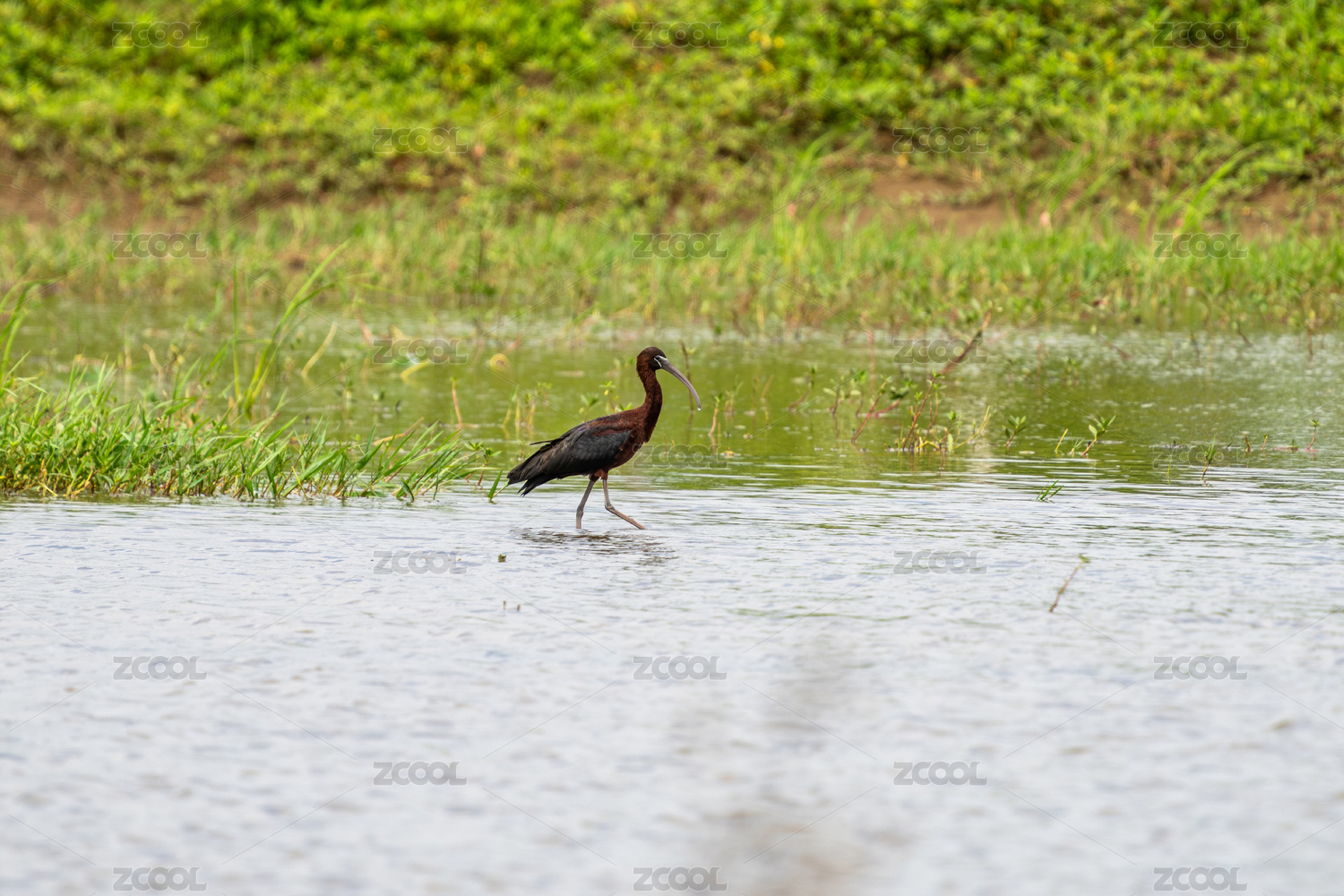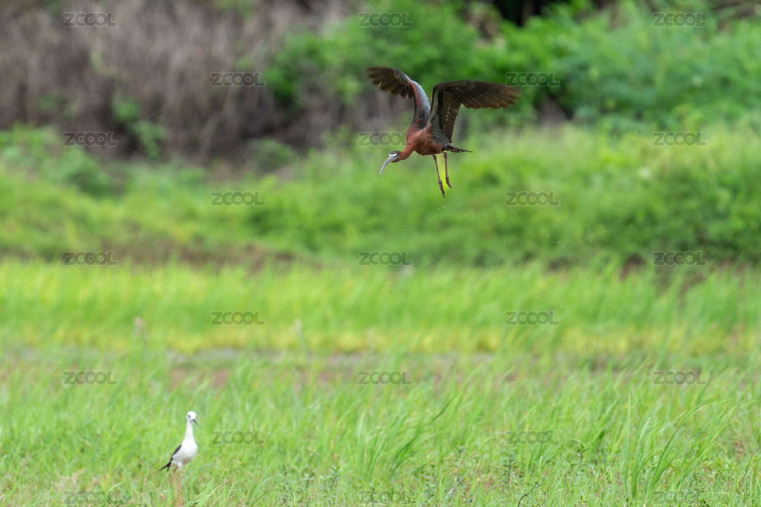 彩鹮鸟飞翔到湿地沼泽地区觅食