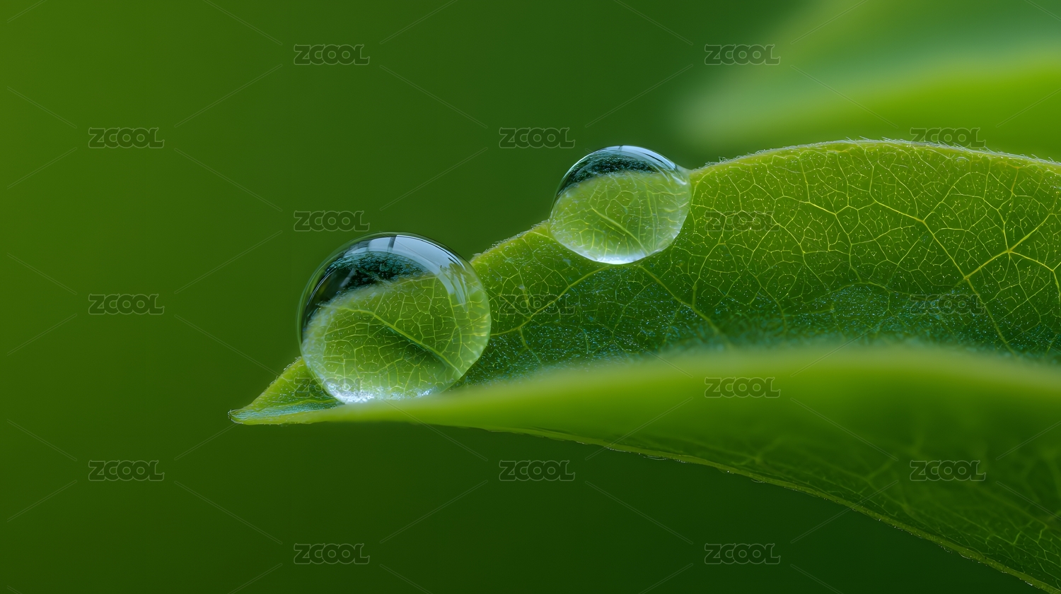 绿叶上的晶莹水珠特写