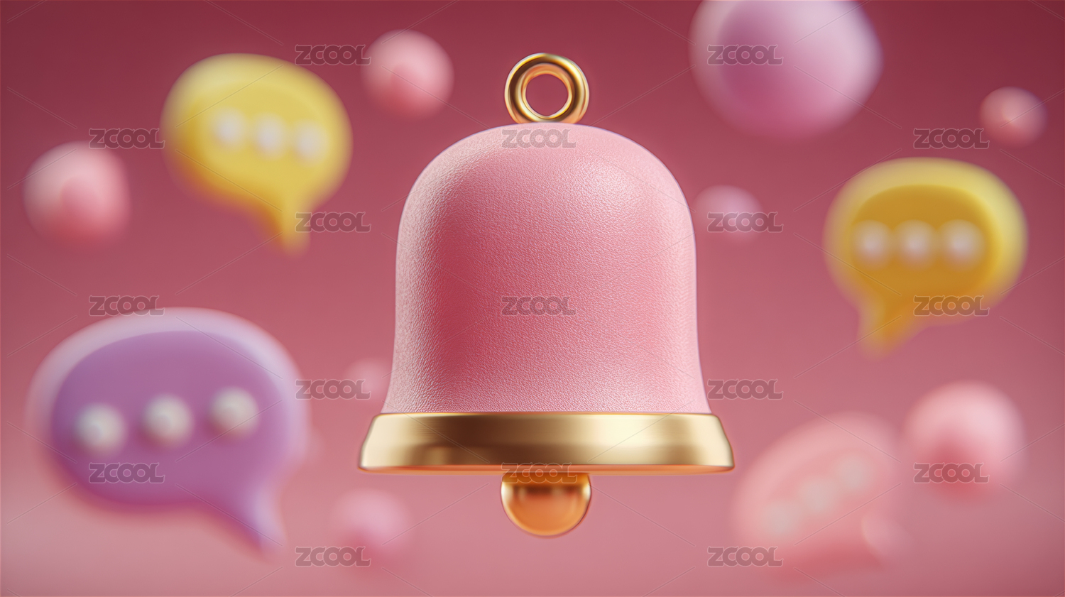 粉色铃铛和模糊彩色气泡背景
