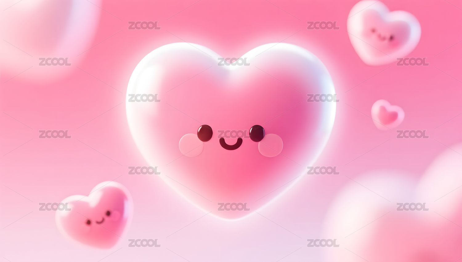 情人节粉白渐变立体模糊弥散爱心背景