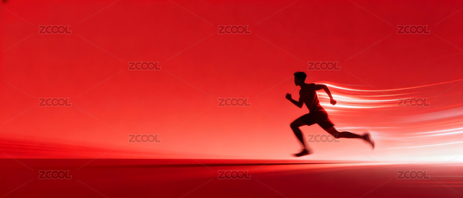 红色背景中奔跑的人影与光轨