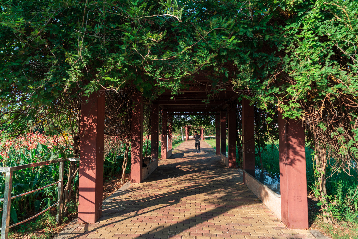 东莞市谢岗镇公园,绿荫覆盖的休闲长廊小道