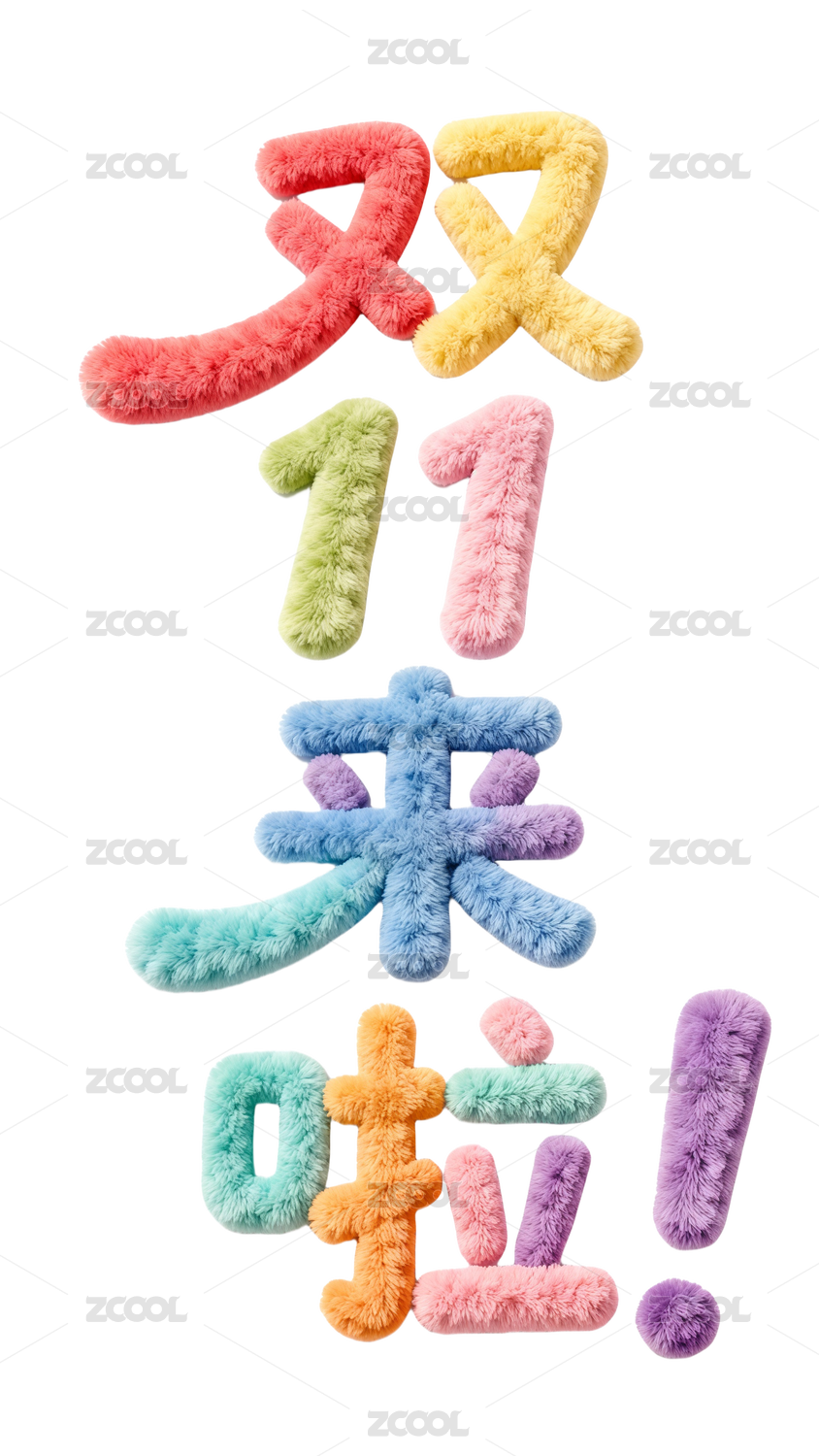 毛绒风双十一字体免抠图