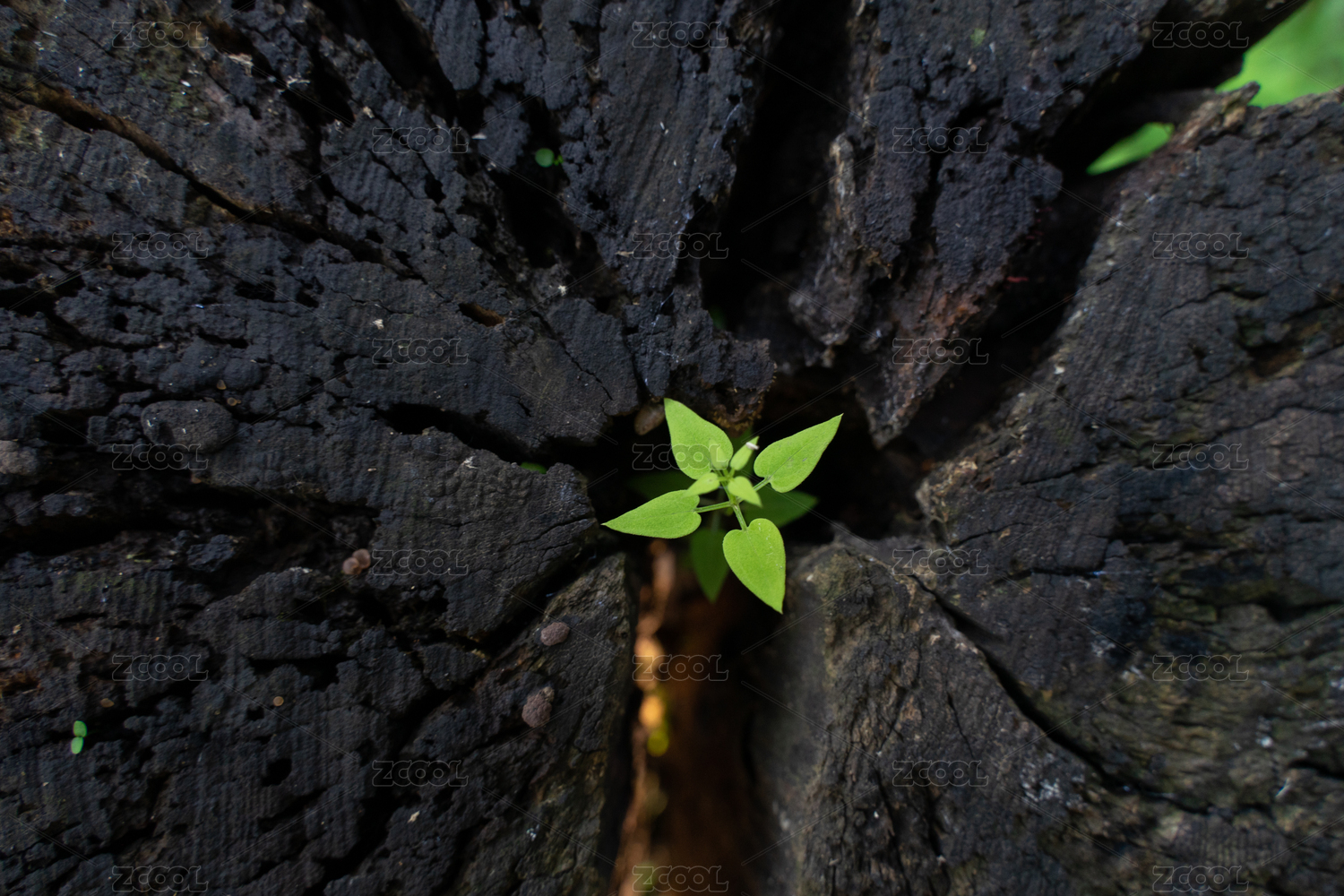木桩上的小草野草