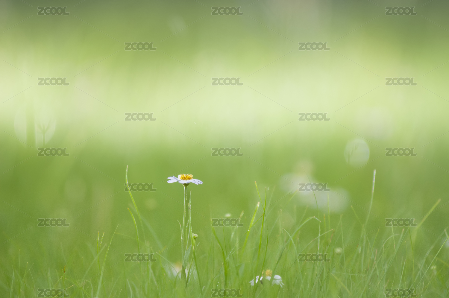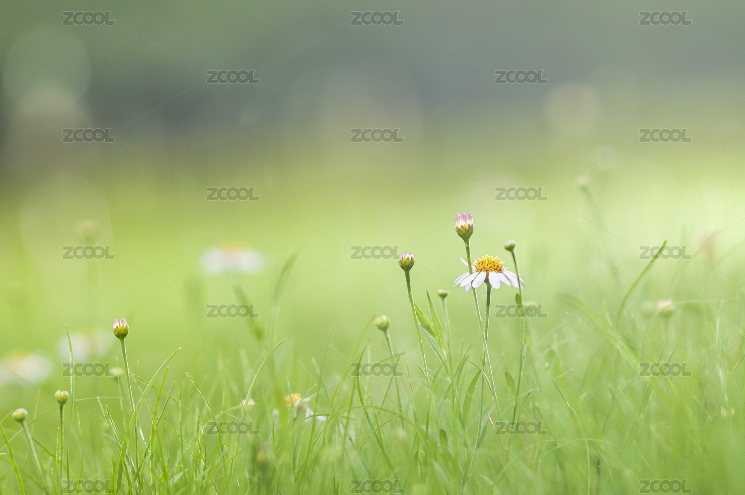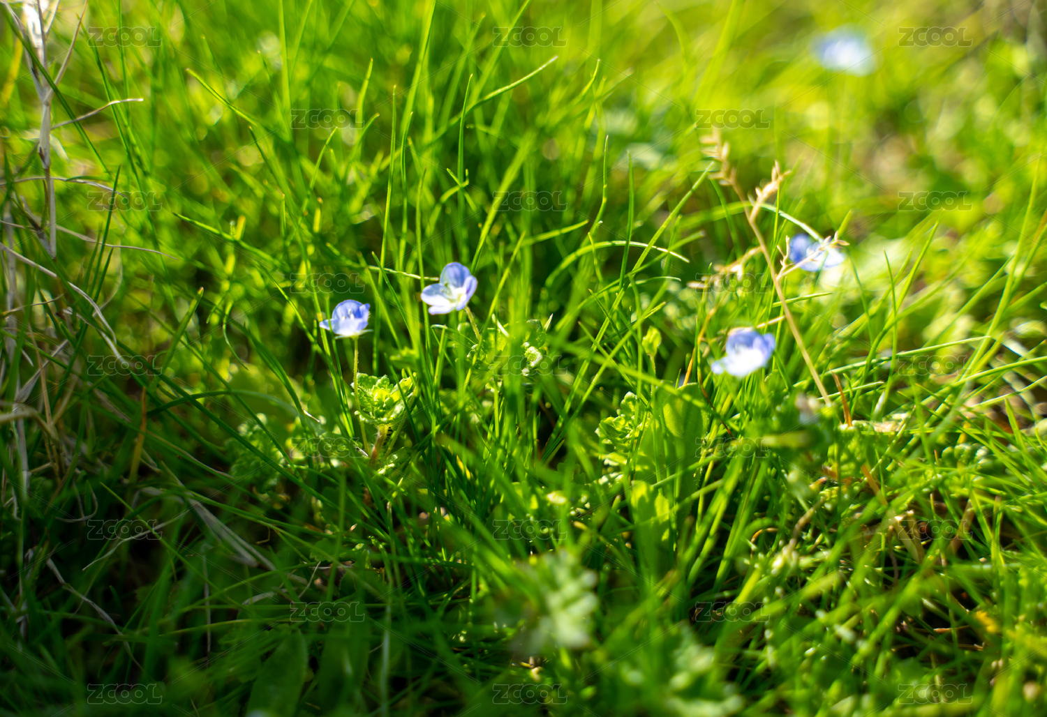 春天阳光下绿草野花