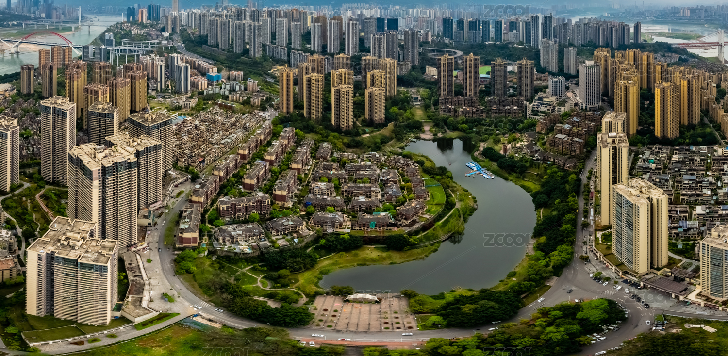 重庆南滨路长江艺术广场城市建筑与千佛寺