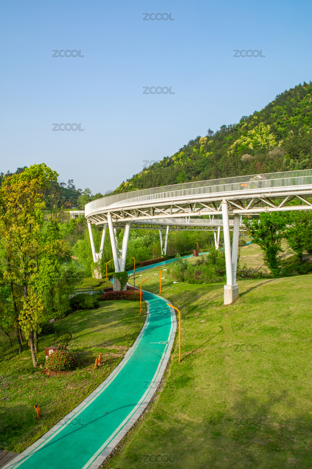 浙江杭州临安青山湖景区雄伟的高架绿道