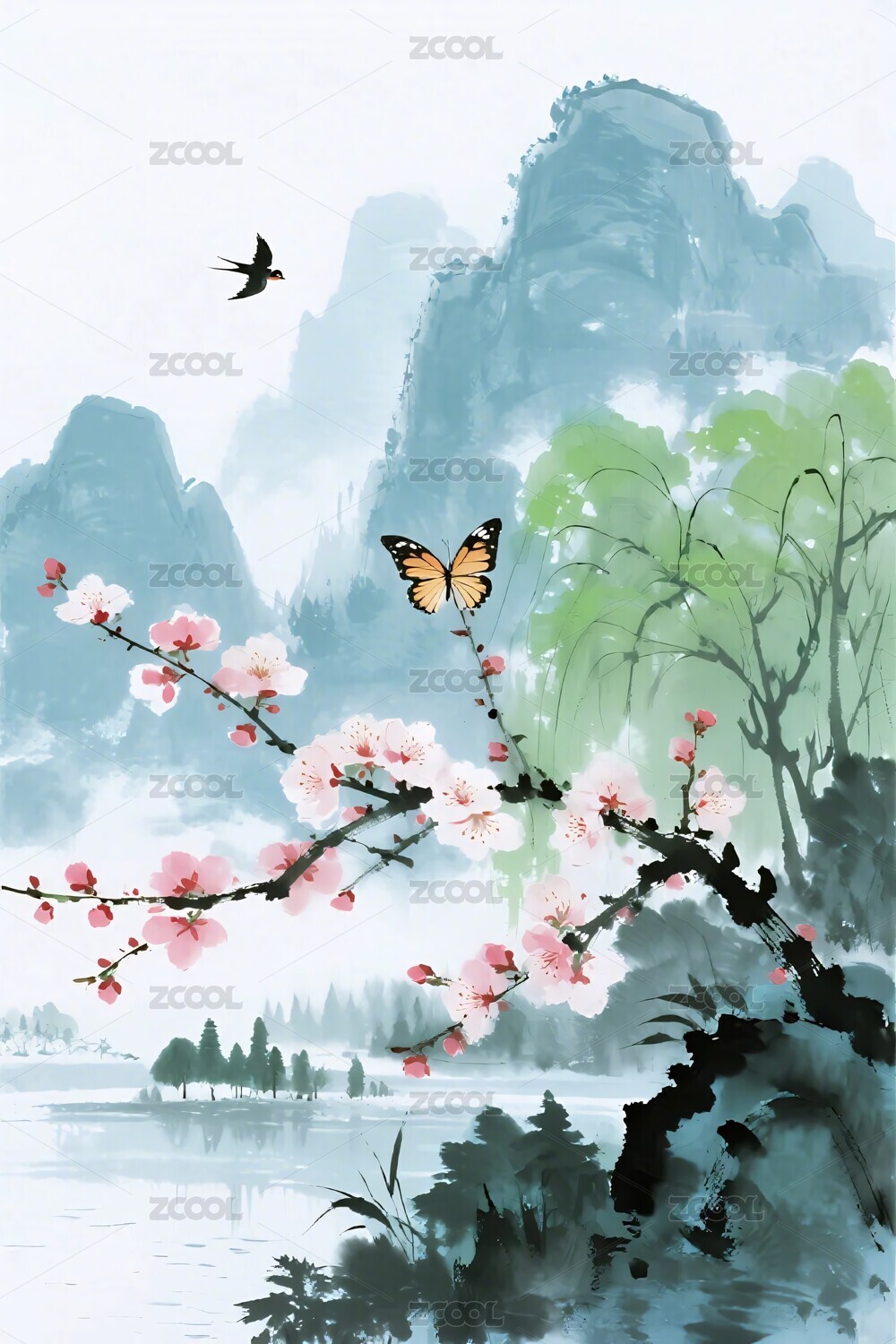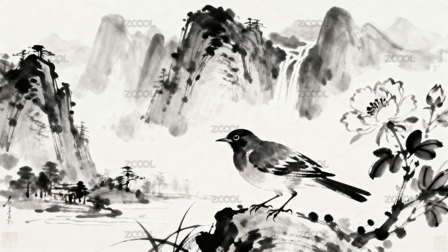 水墨山水花鸟