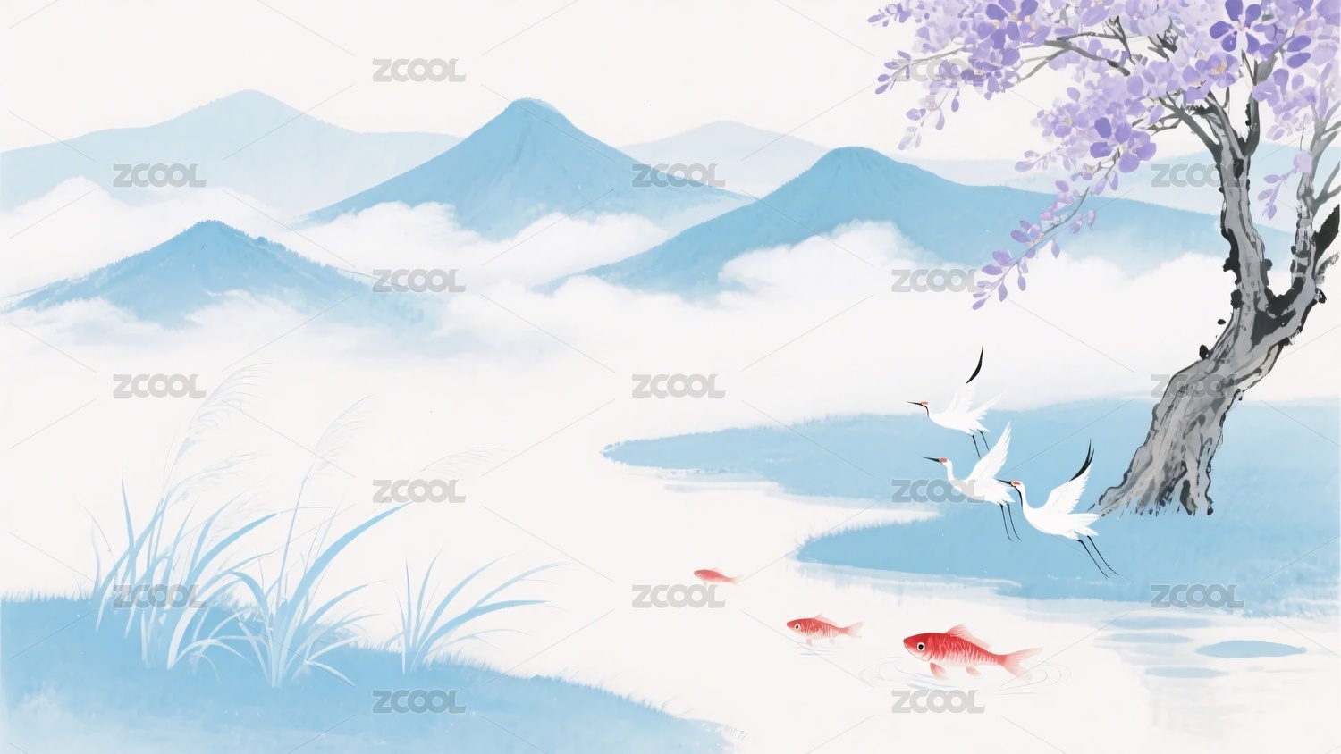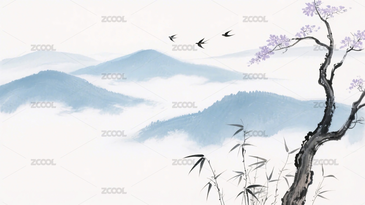 水墨中国风毛笔画国画图片工笔人物花鸟山水国风