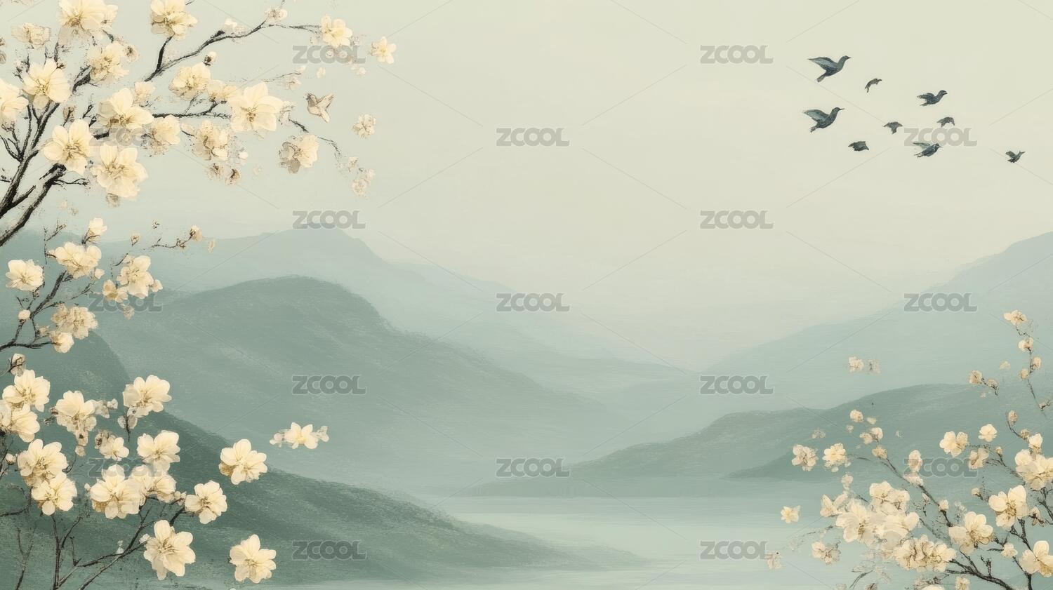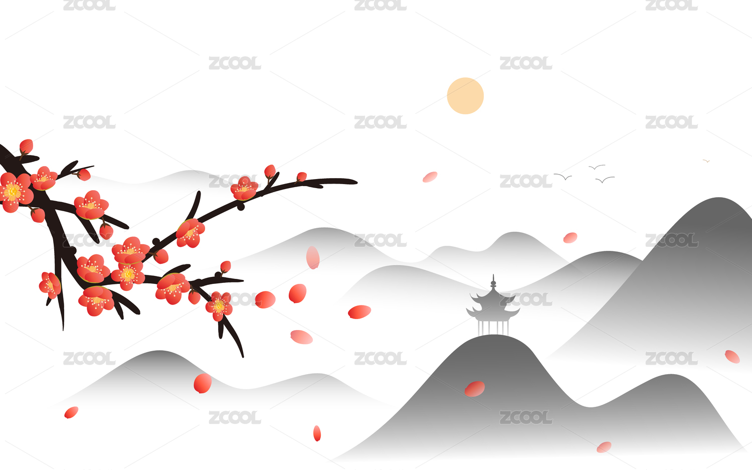 梅花飞舞水墨画山水画背景墙