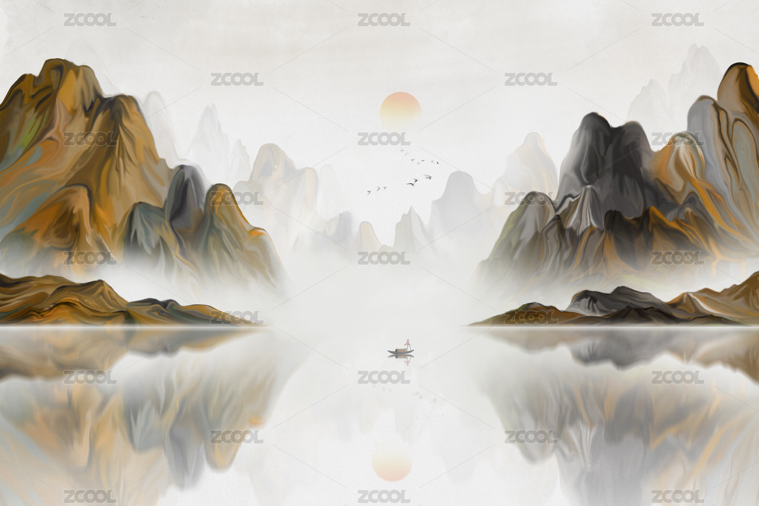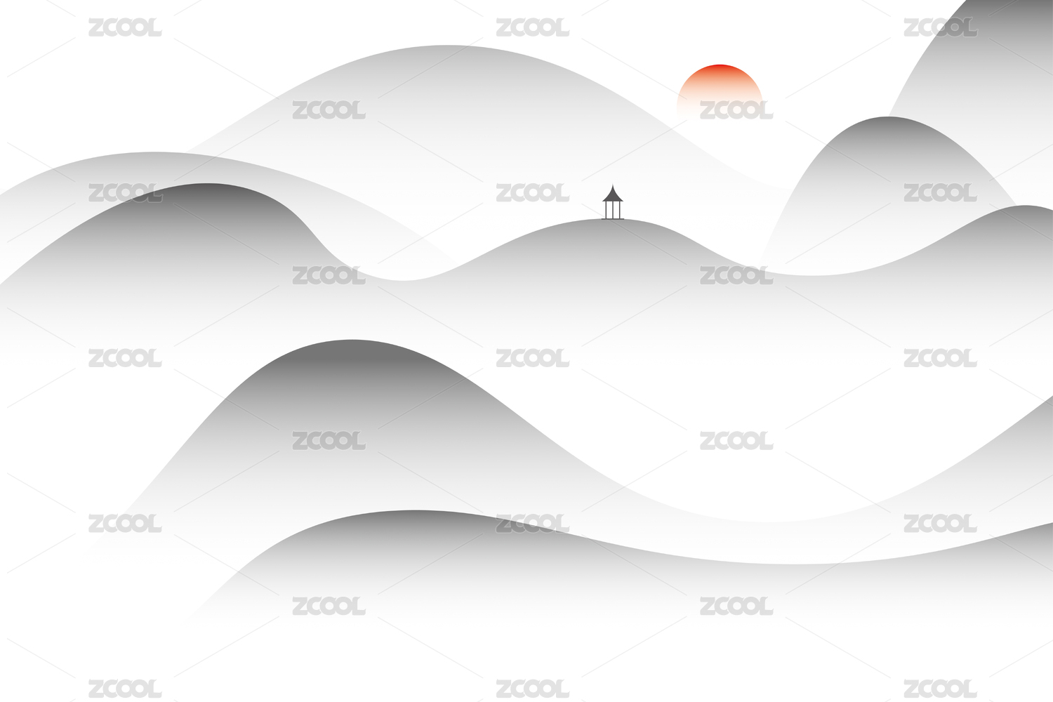 矢量抽象典雅风格新中式山水图