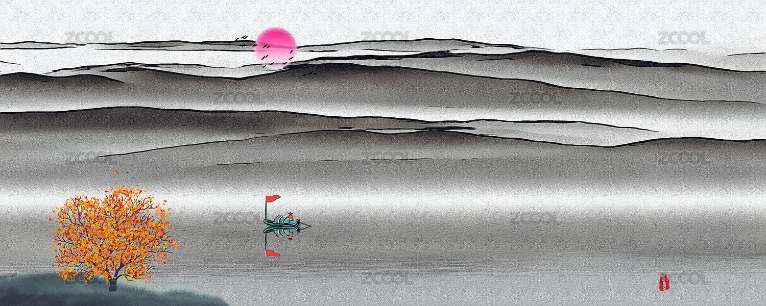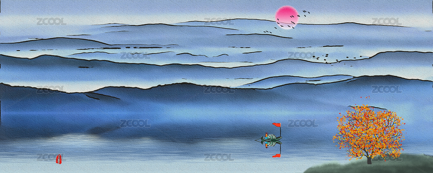手绘中国风意境水墨山水风景画