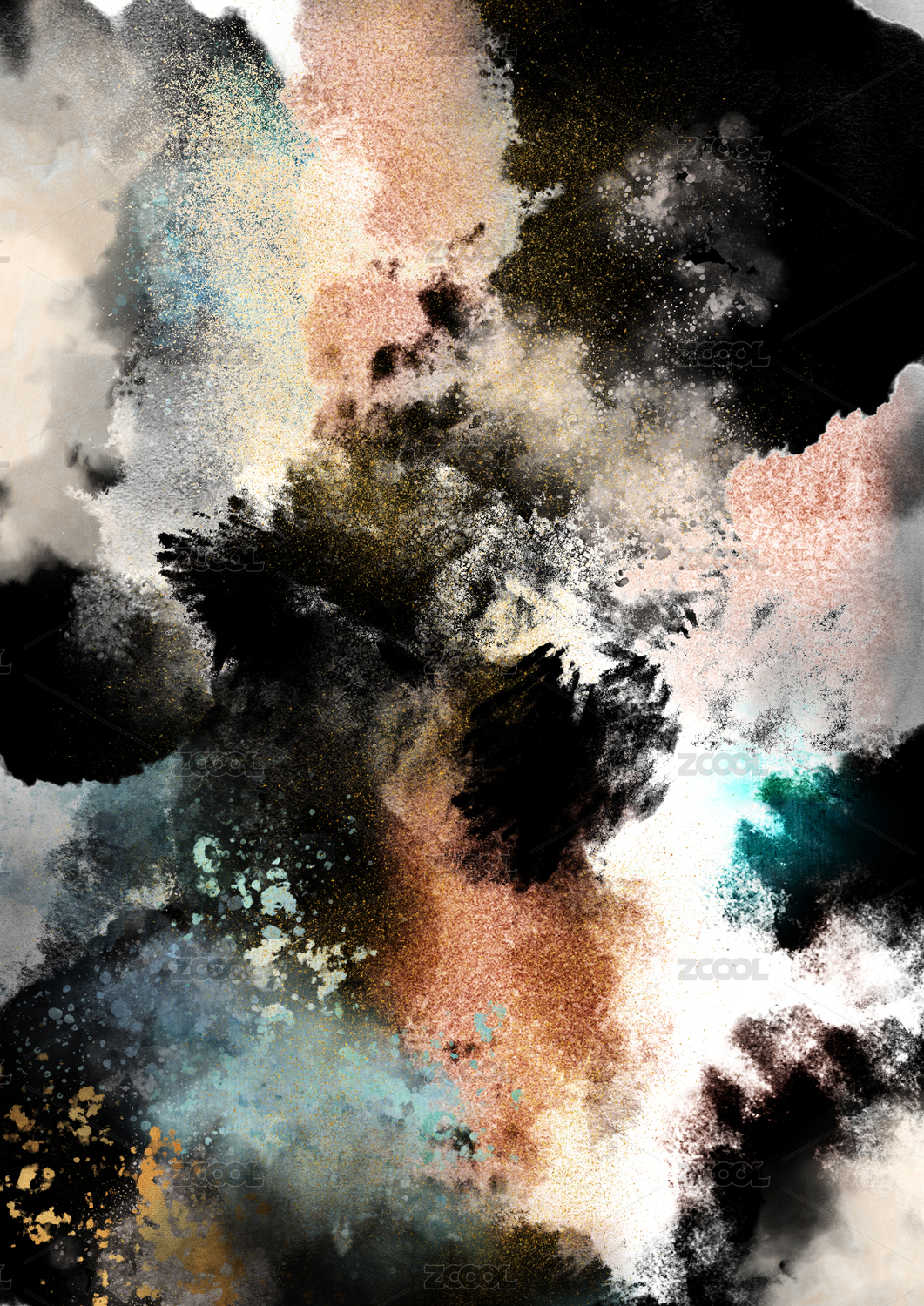 水彩抽象喷金古风水墨装饰画背景增效纹理