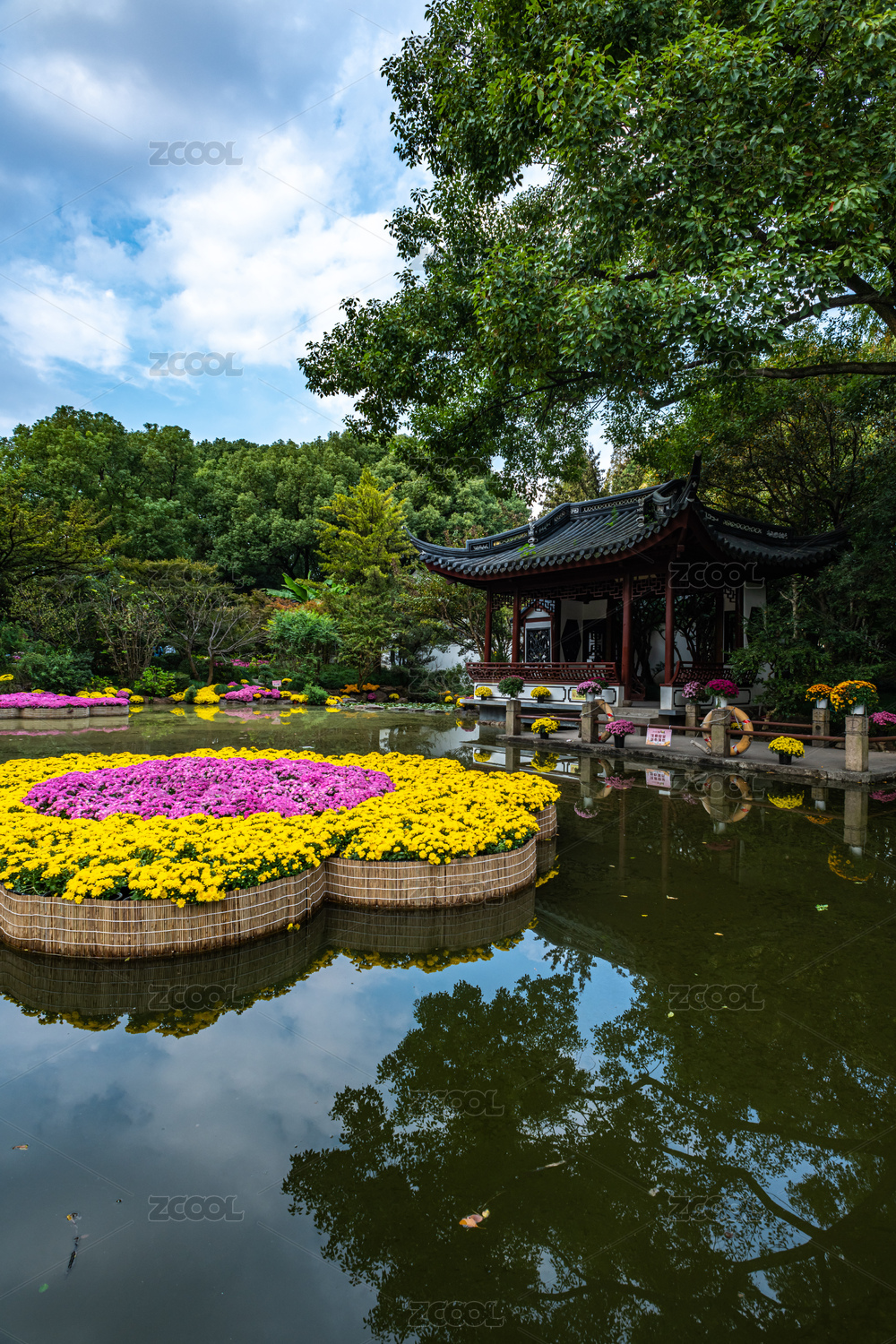 上海嘉定汇龙潭公园自然景观菊花展