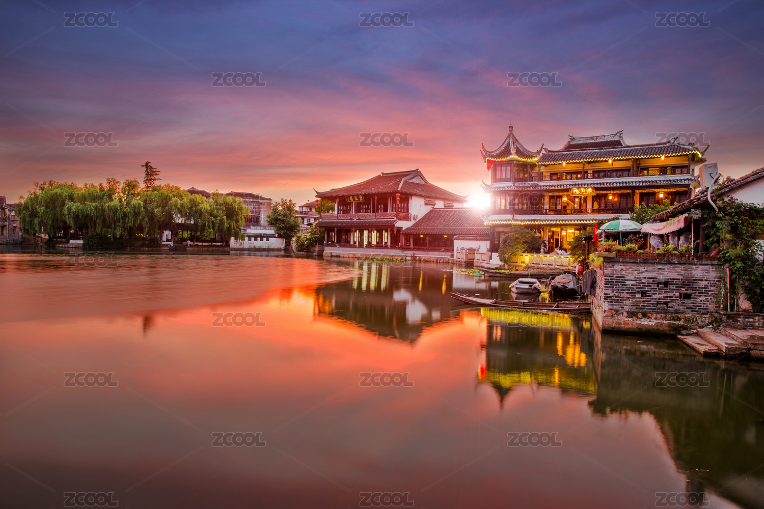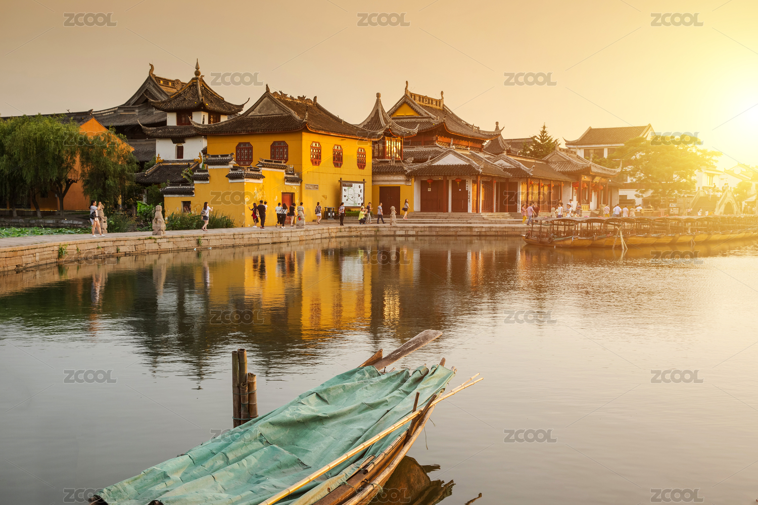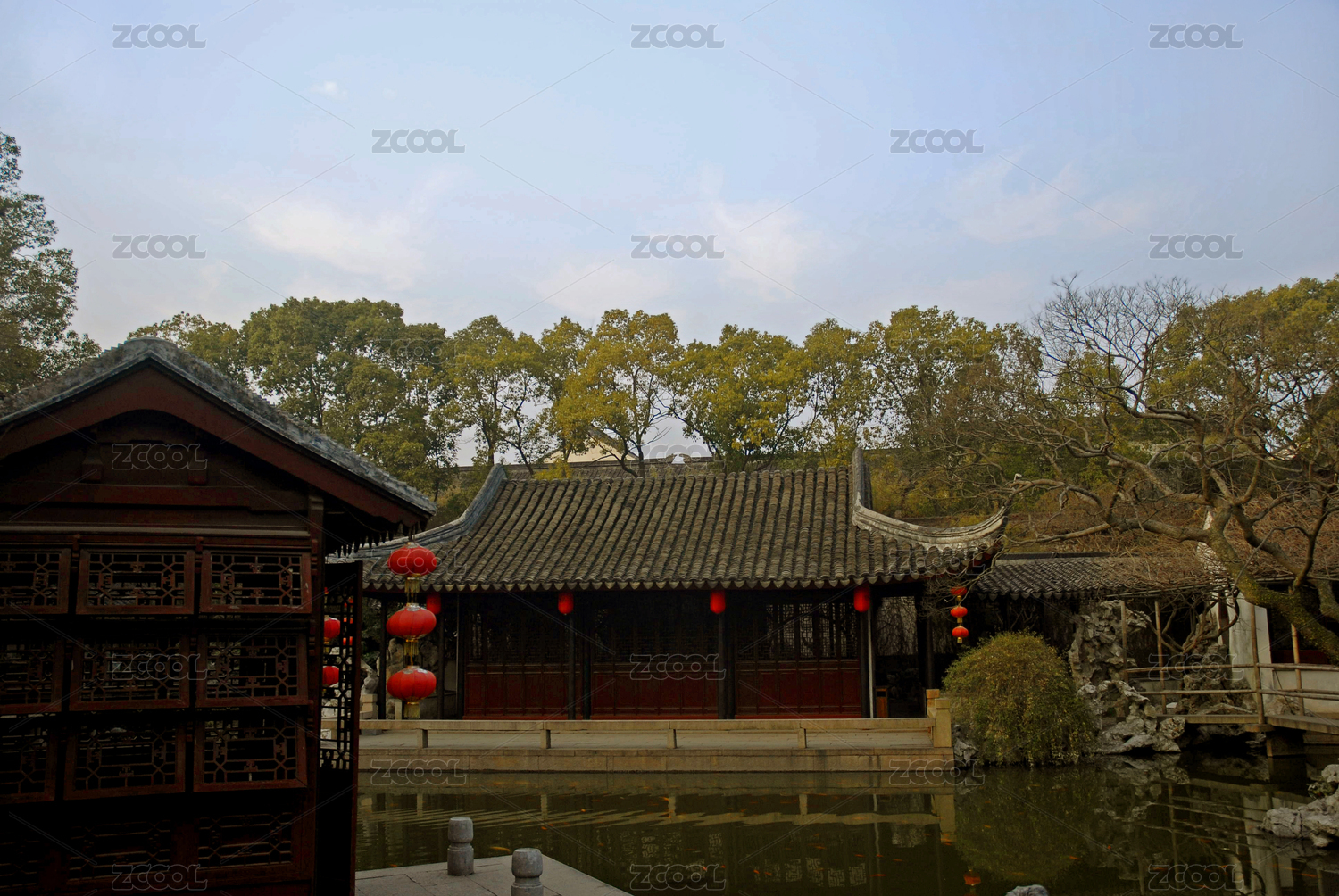 江苏木渎古镇苏州园林秀野园池塘和建筑