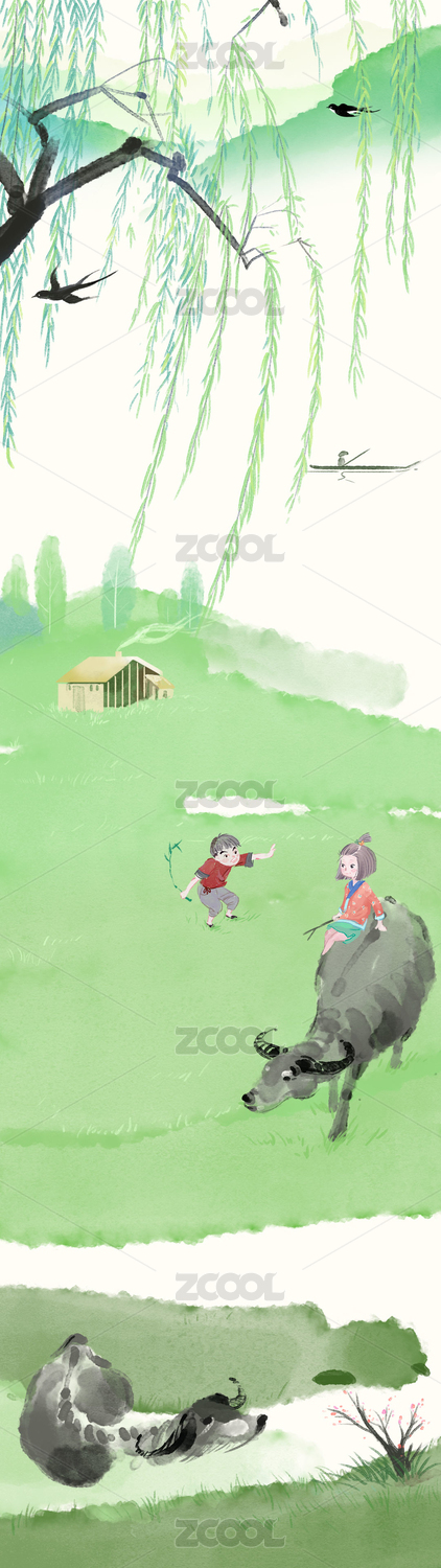 春天的杨柳与牧童