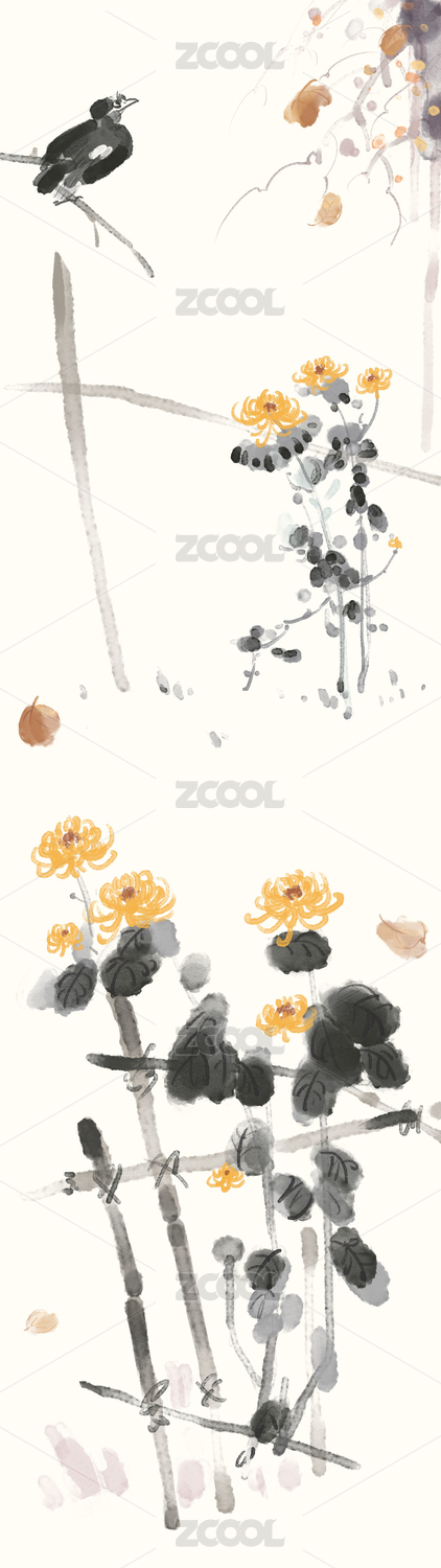 花鸟装饰图 玄关水墨花鸟 水墨画鸟 水墨花鸟装饰画