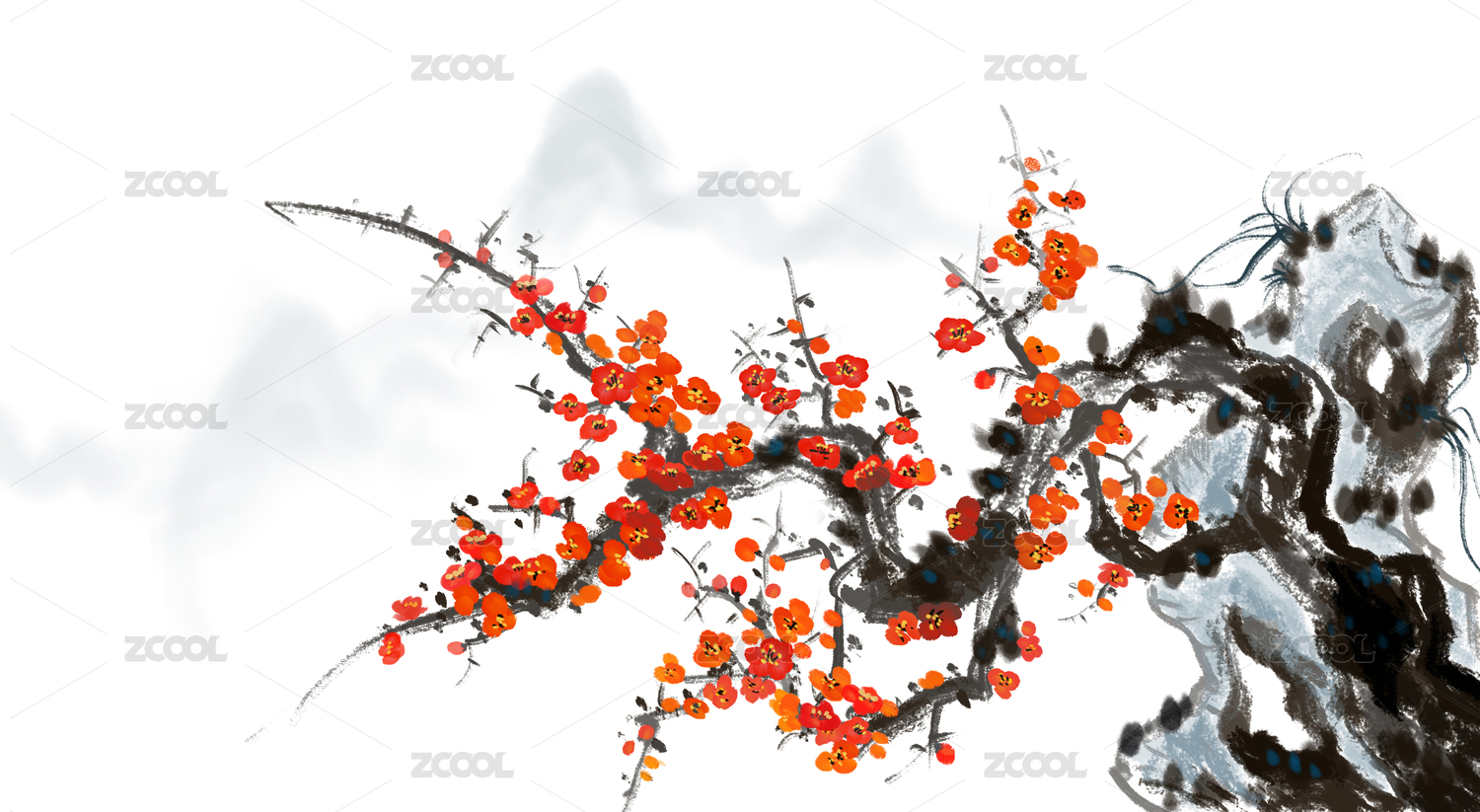 石头梅花中国水墨画