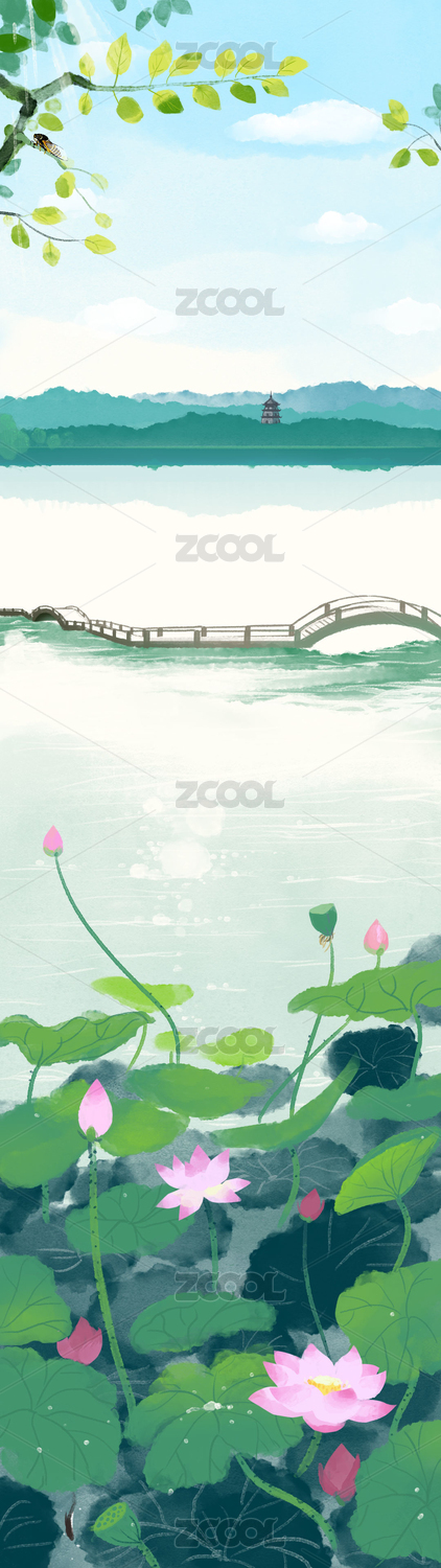 夏天的西湖荷花池与曲桥