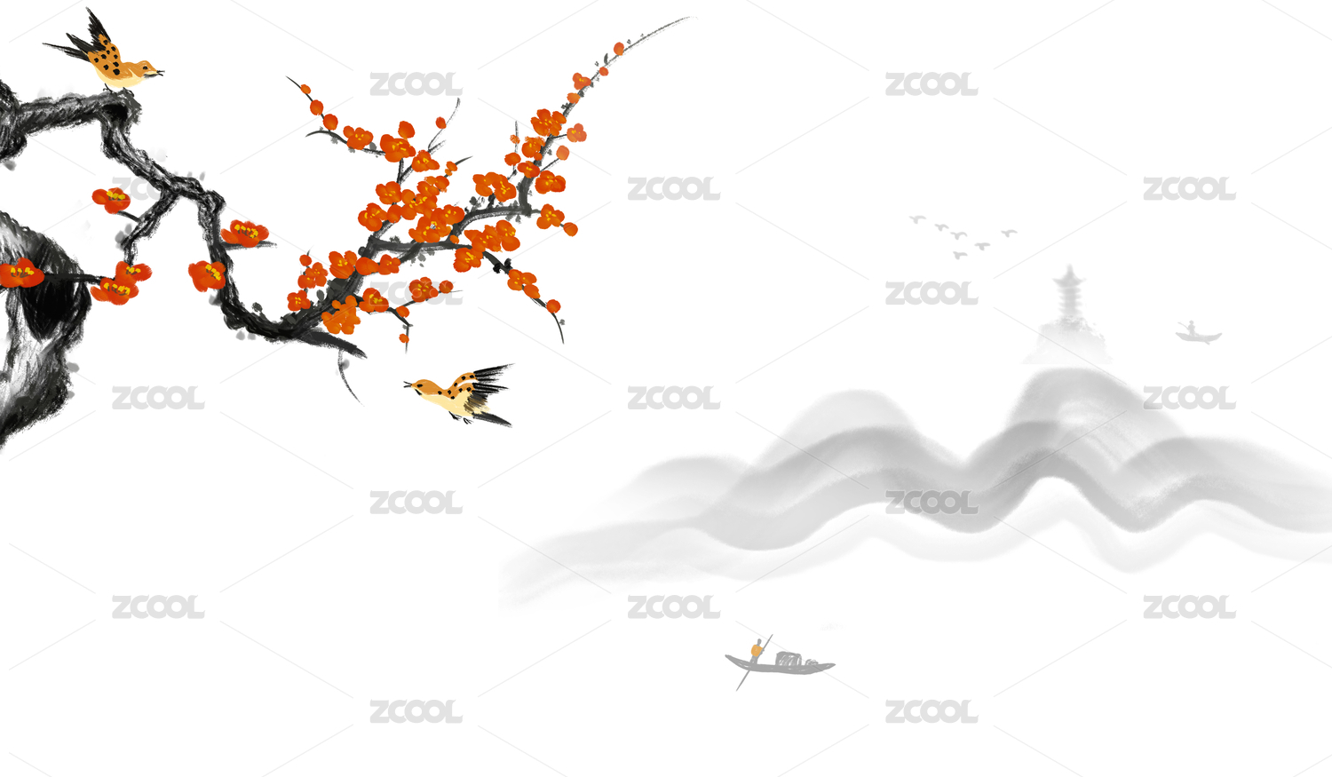 中式水墨壁画 水墨背景墙 手绘中式花鸟 水墨新款壁画