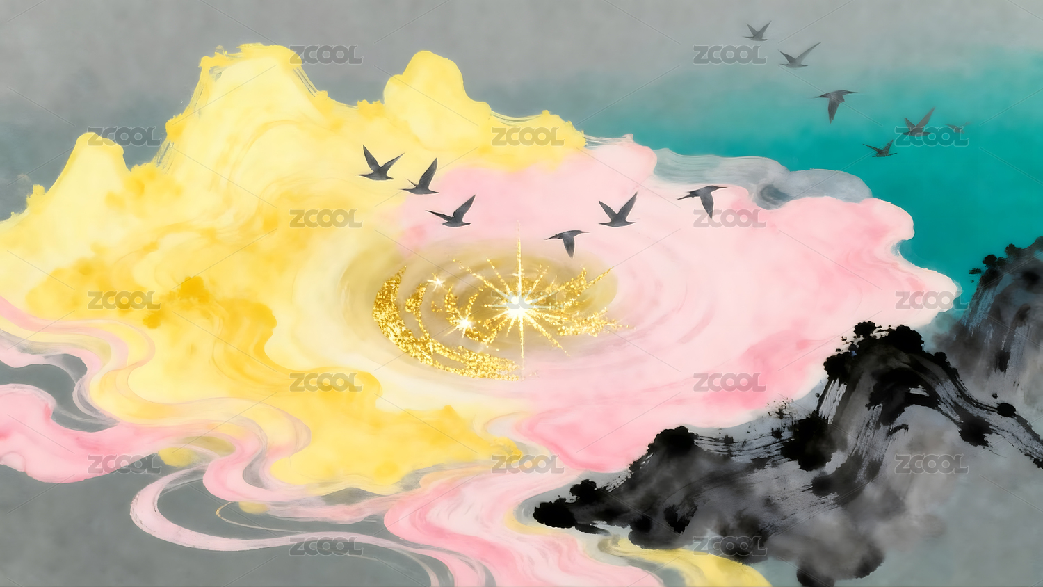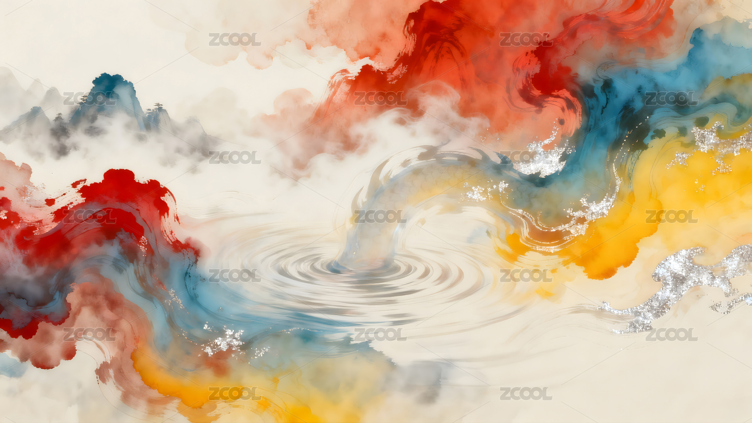 新中式抽象泼墨文化艺术背景 中国风意境泼墨现代抽象画