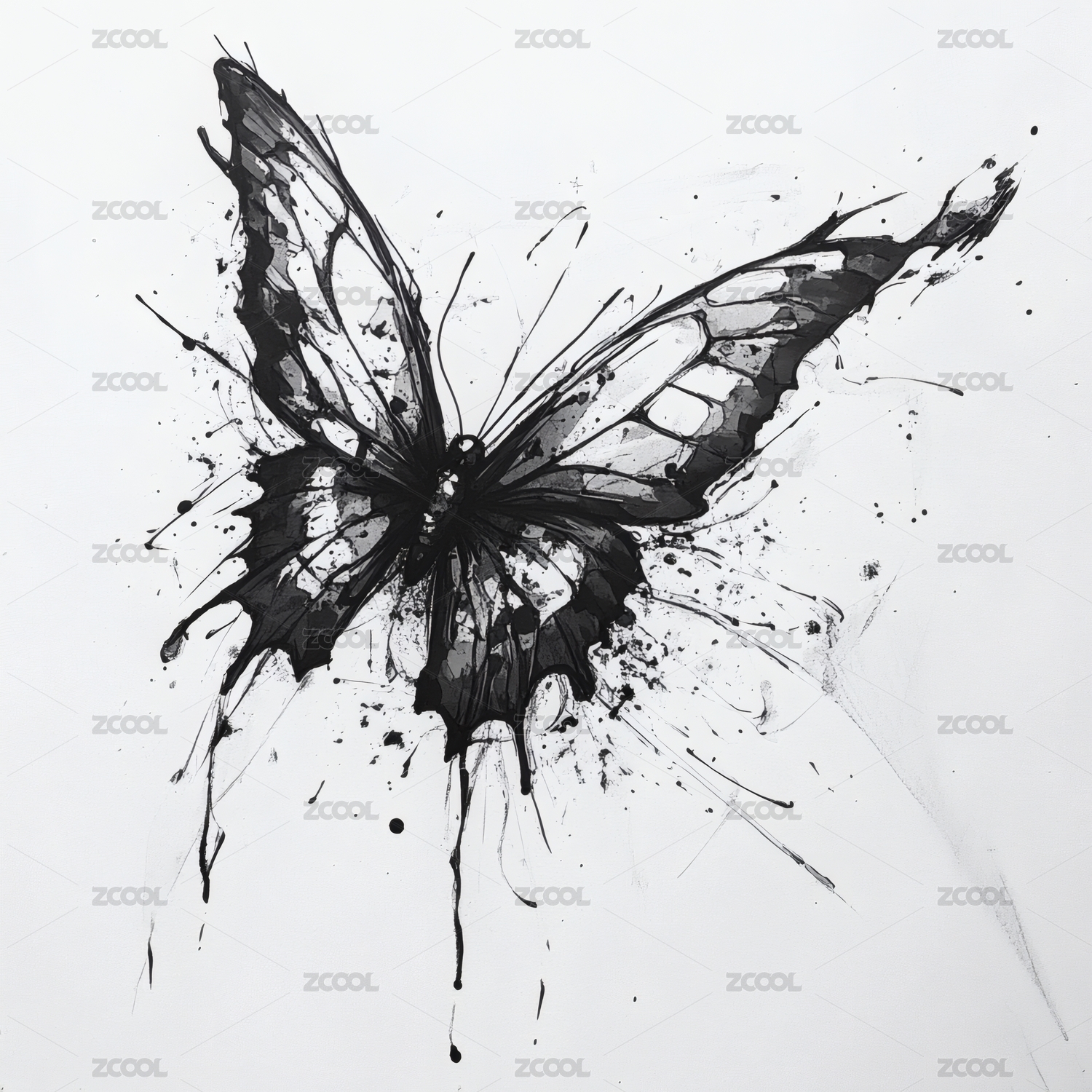 水墨风格的抽象蝴蝶艺术画