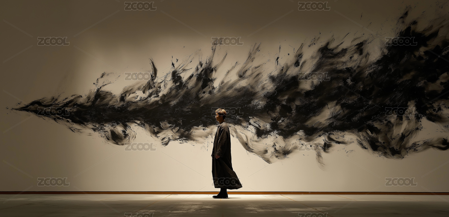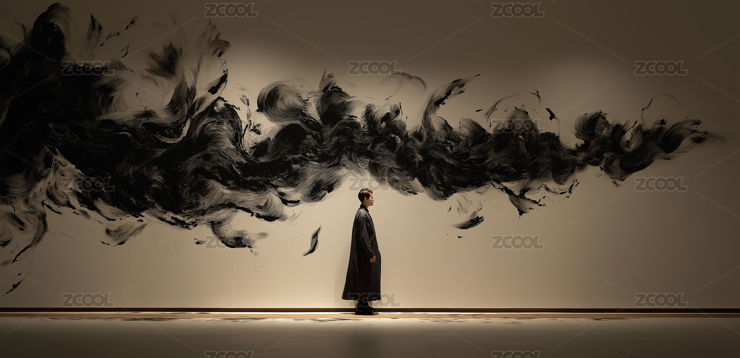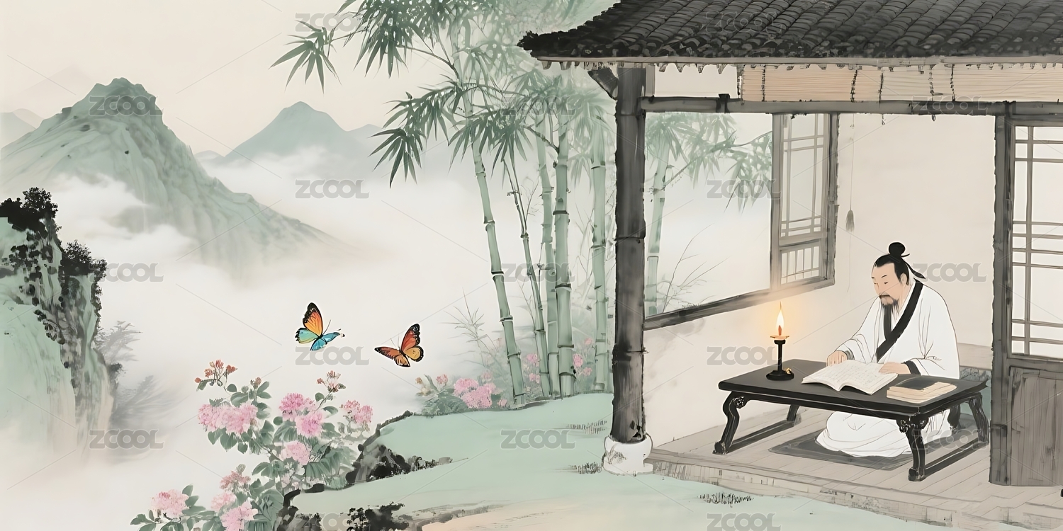 水墨艺术人物互动场景插画装饰画设计素材