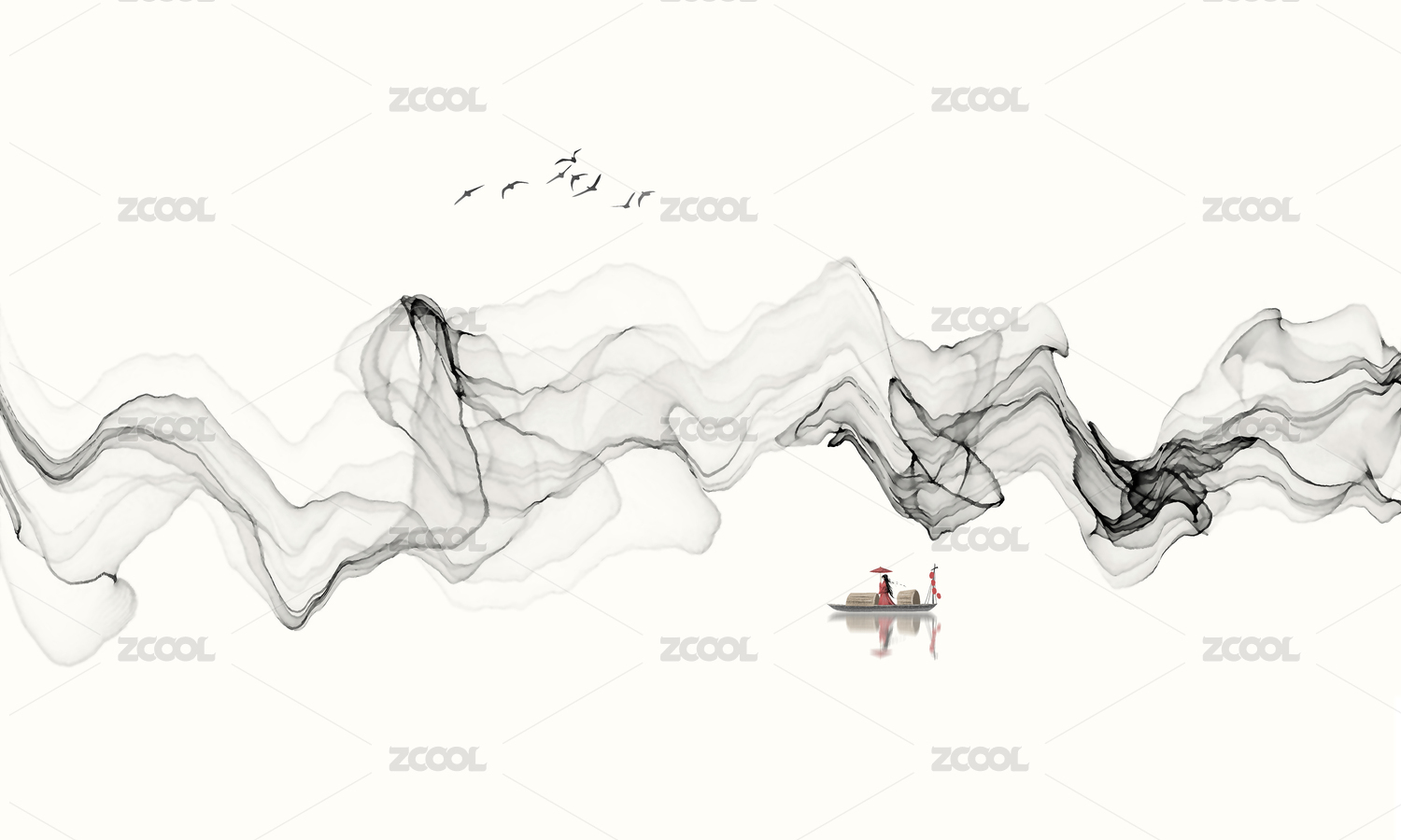 简约新中式水墨山水意境背景图