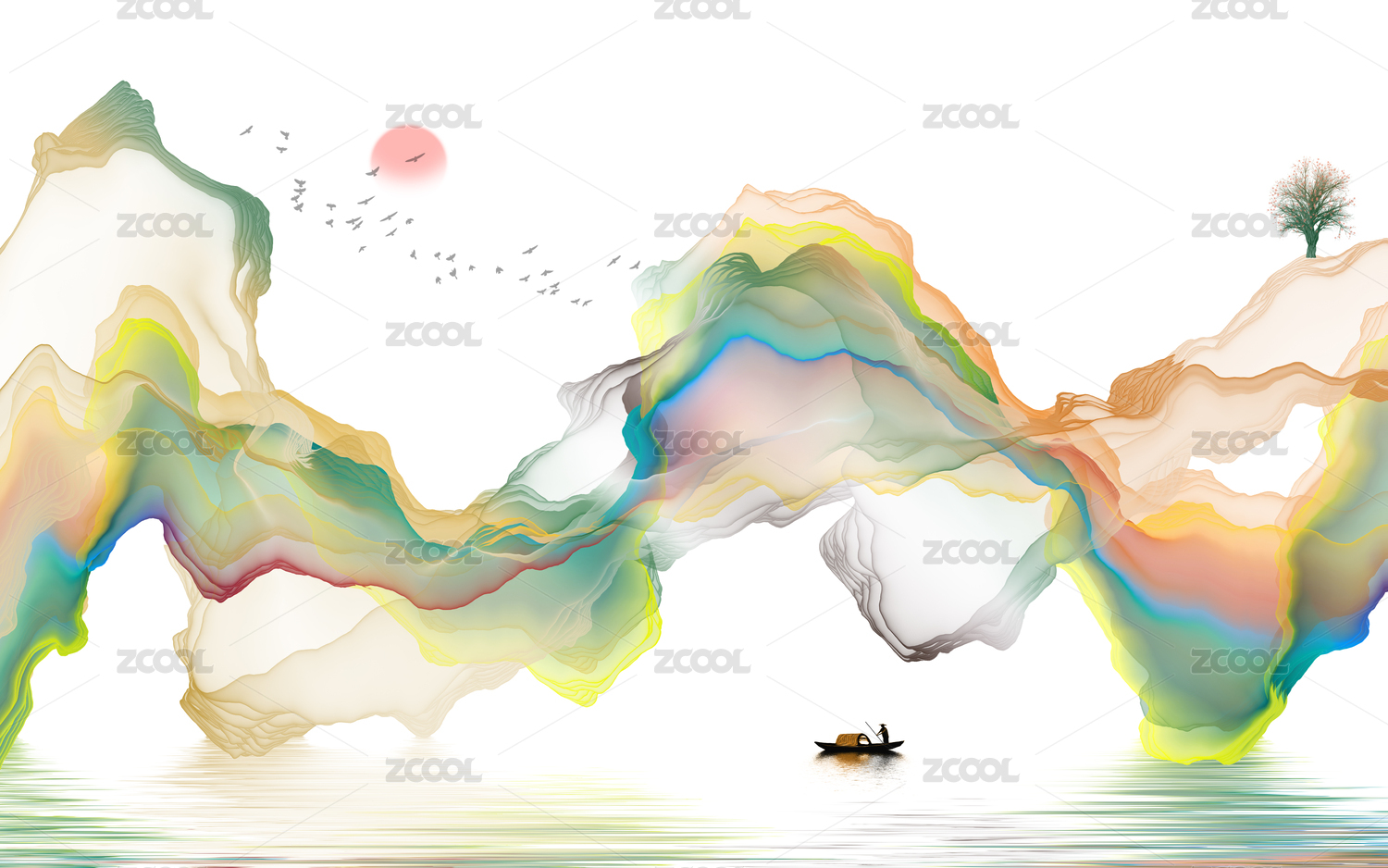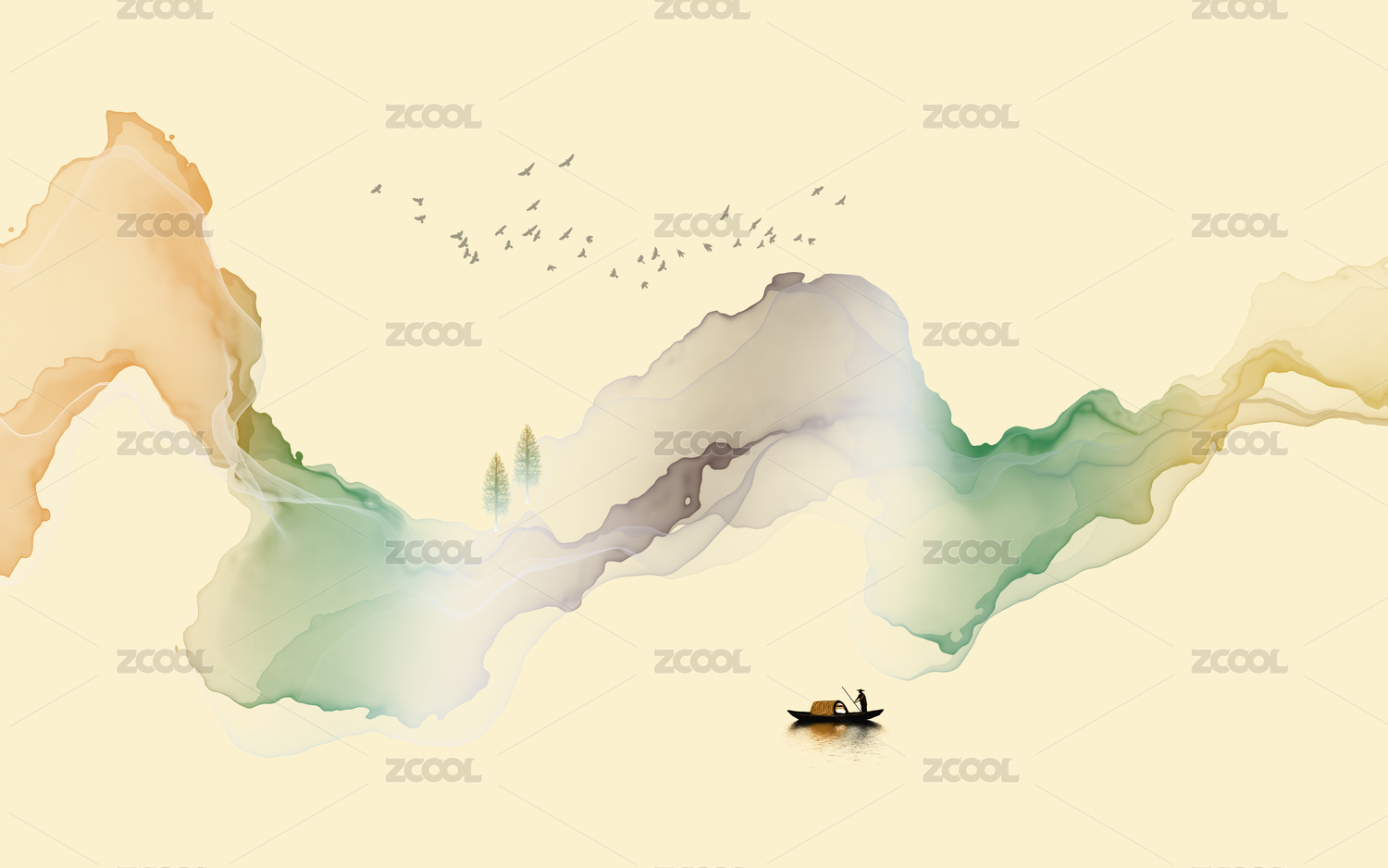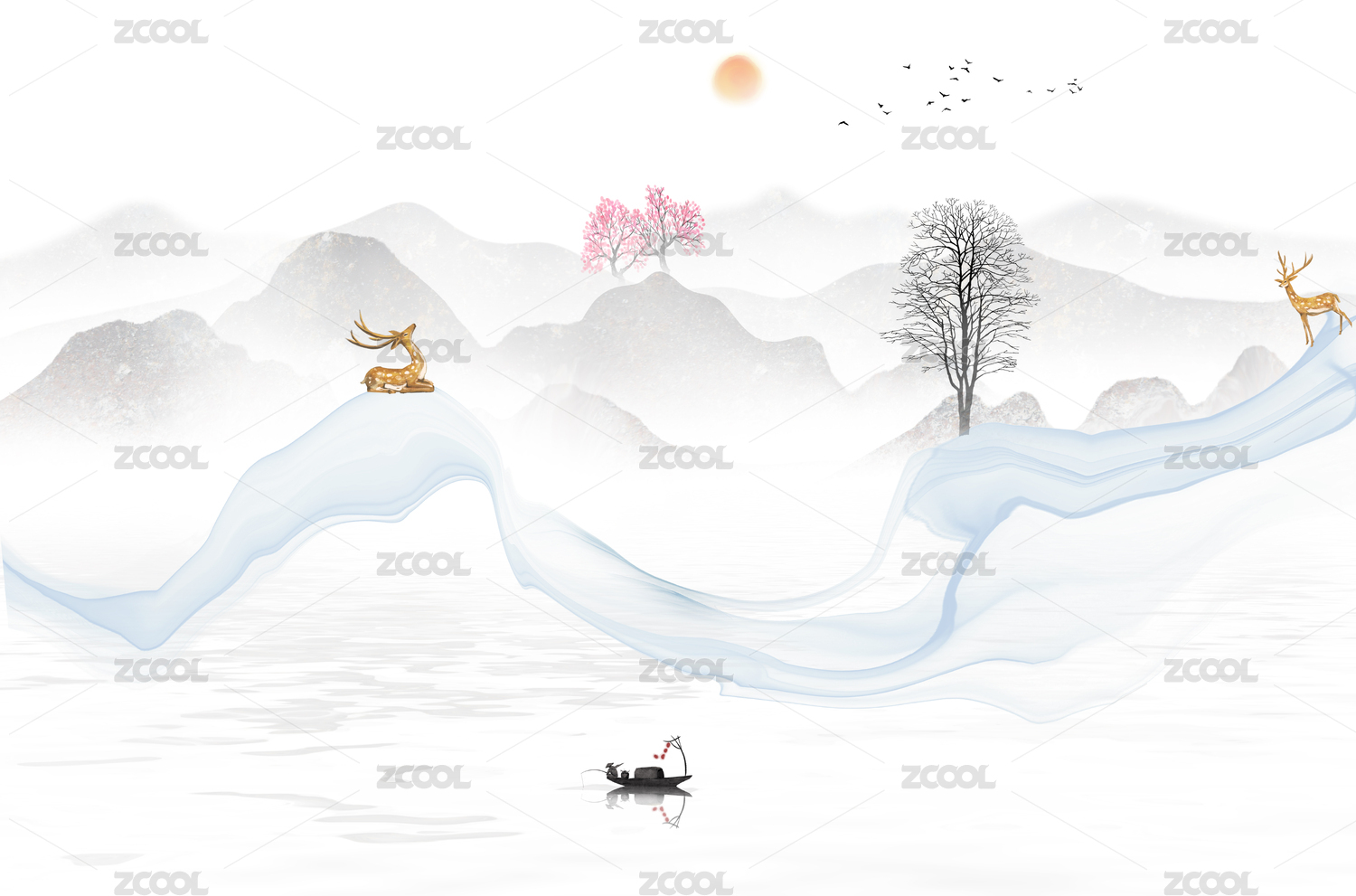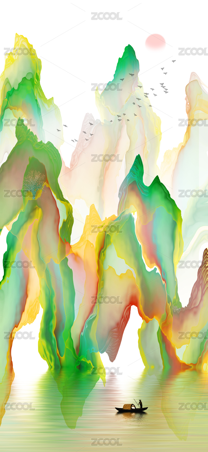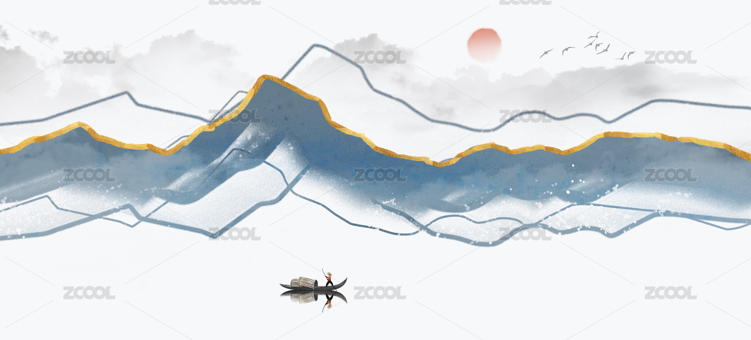 新中式抽象曲线山水