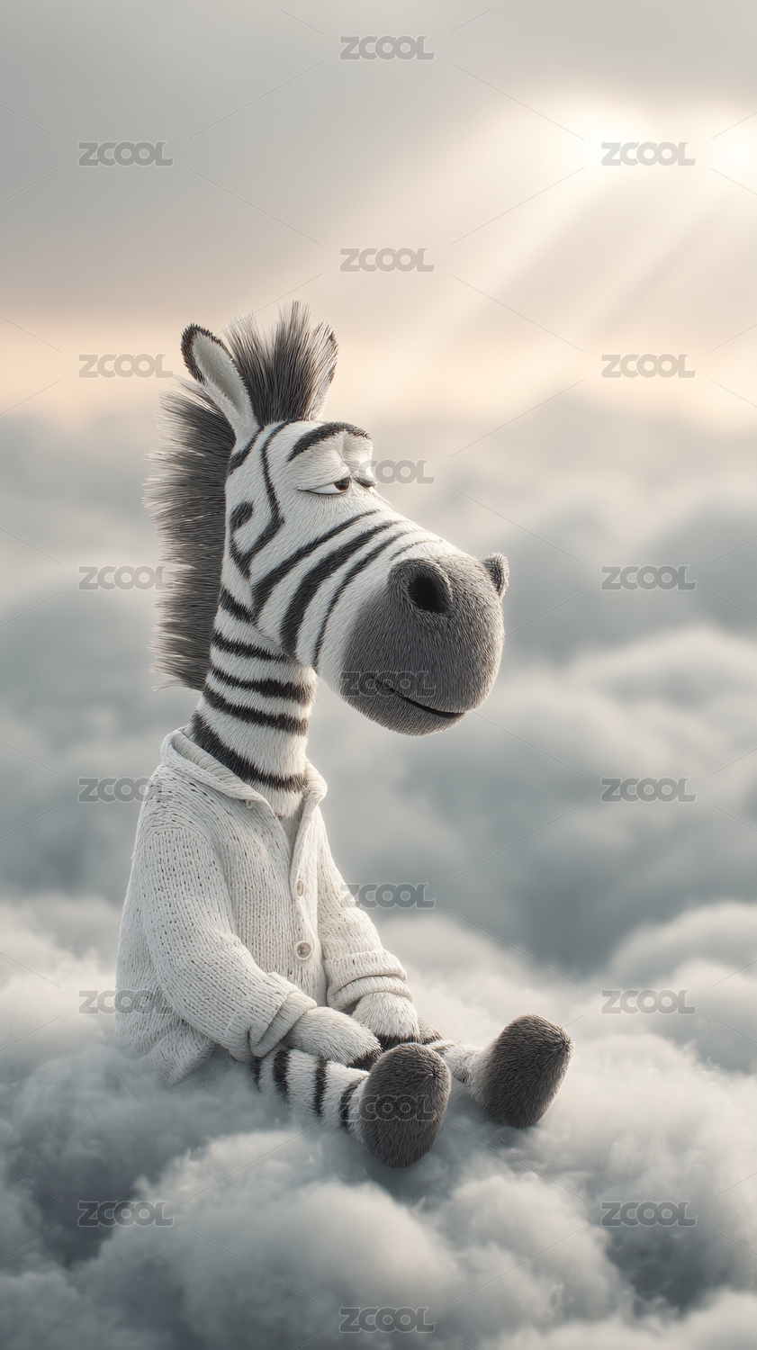 坐在云端的斑马卡通形象