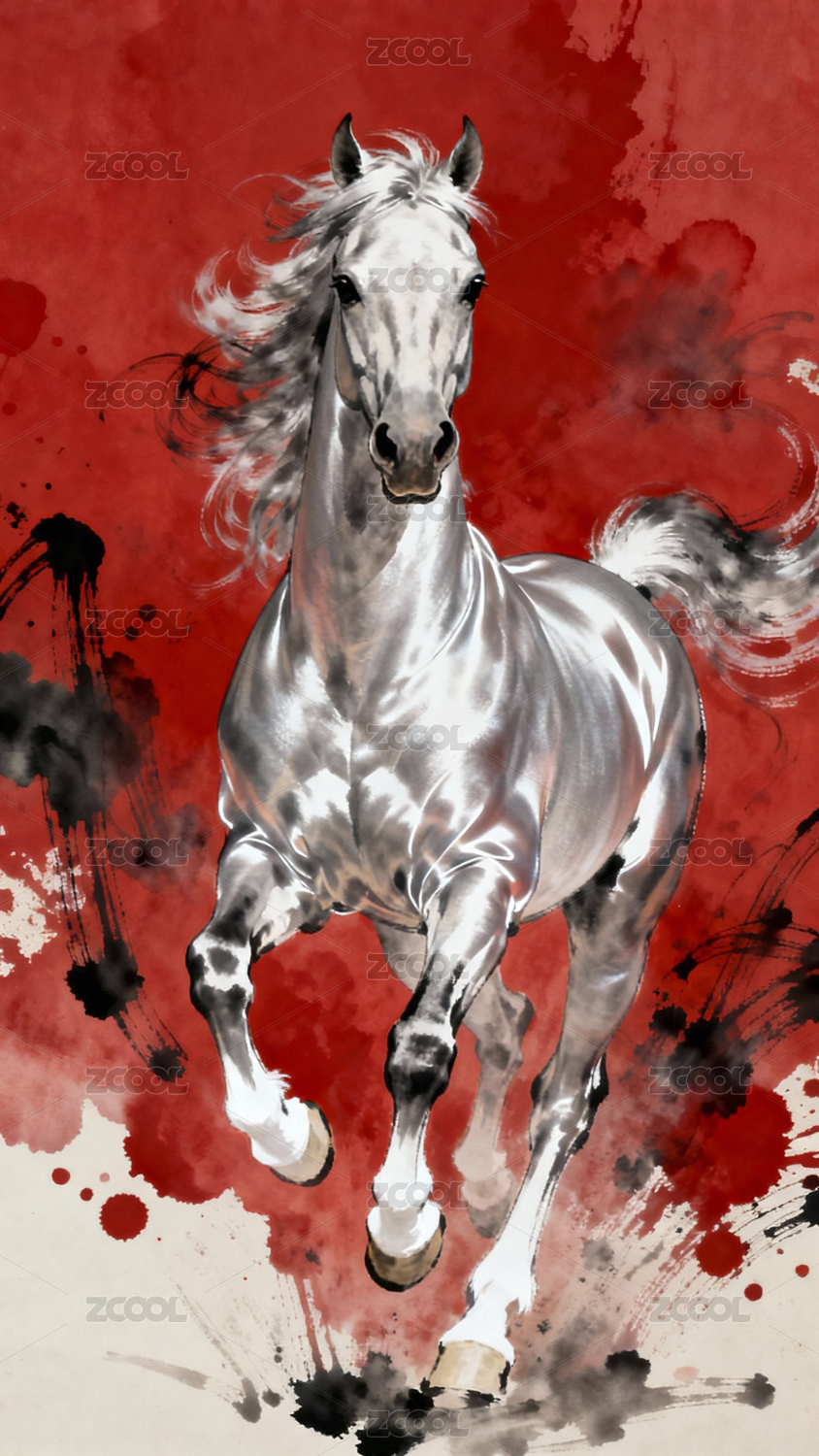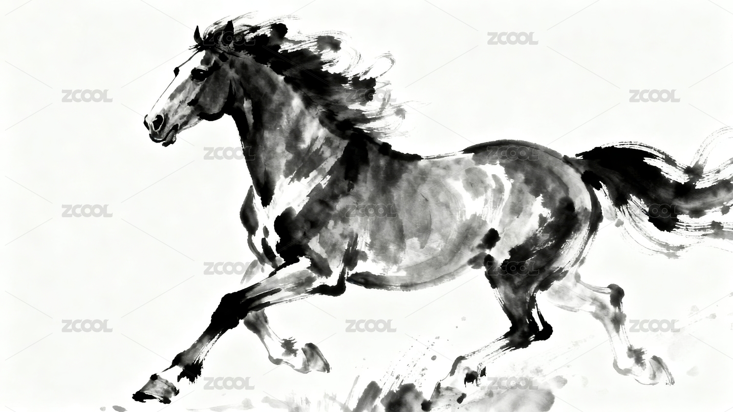 水墨奔马动感十足