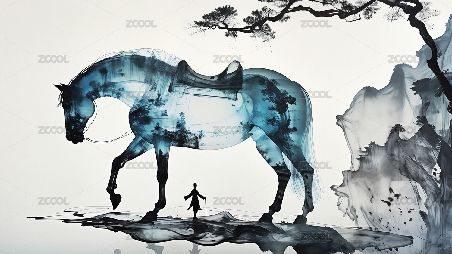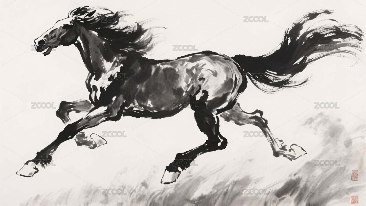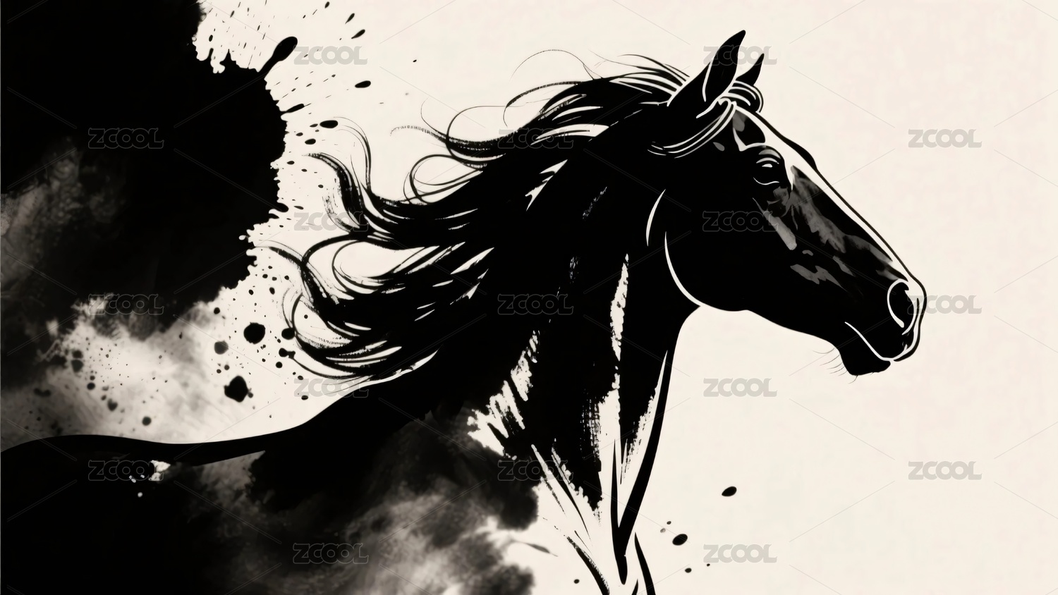 水墨奔马写意风艺术创作场景