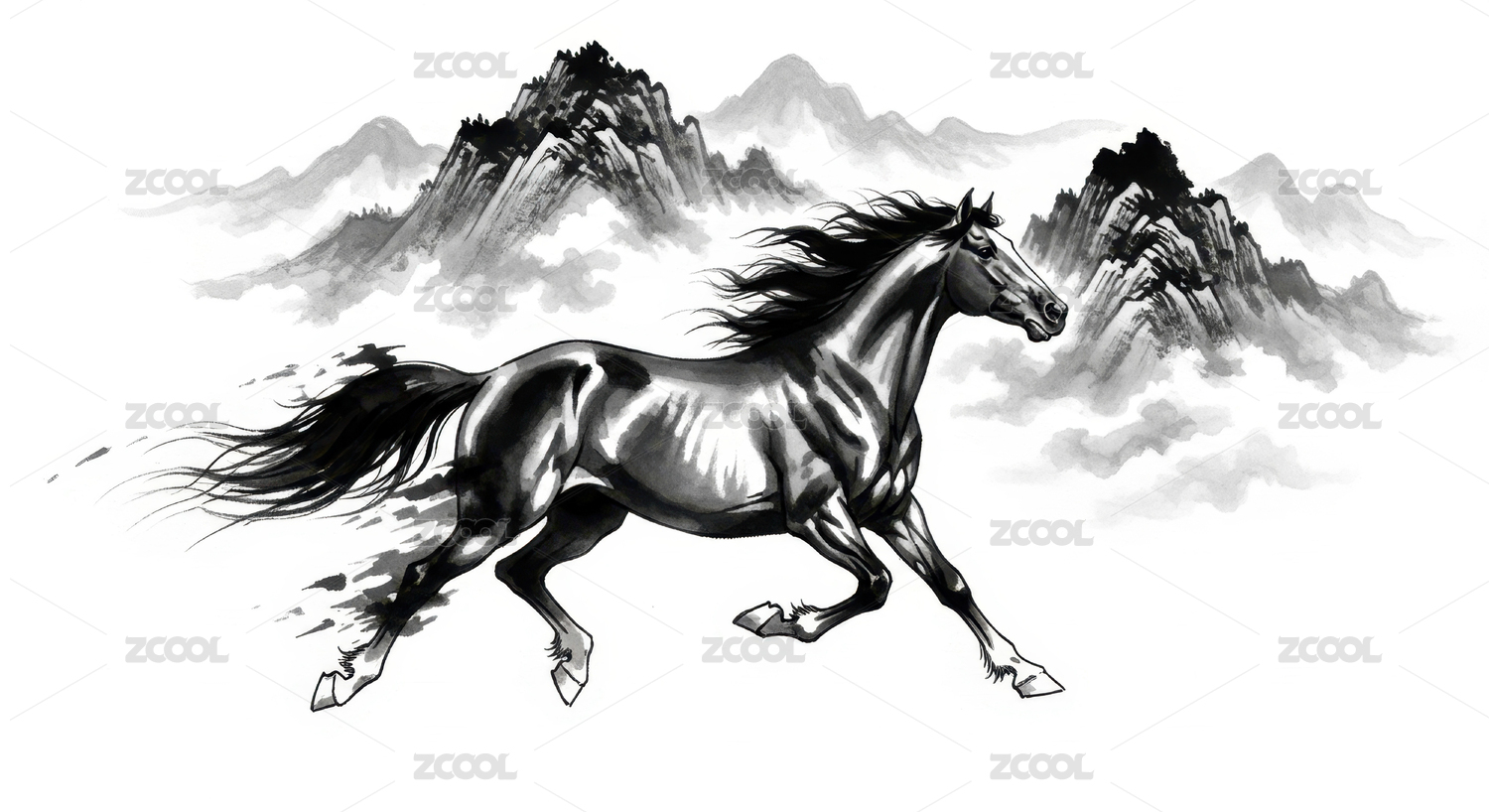 水墨奔马插画