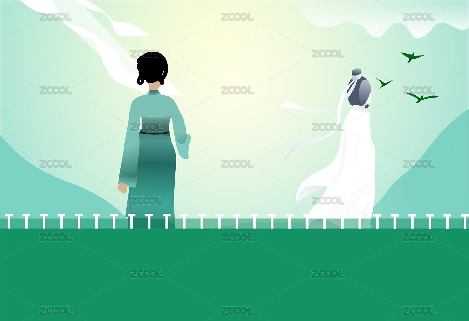 水墨风送别人物写意国画
