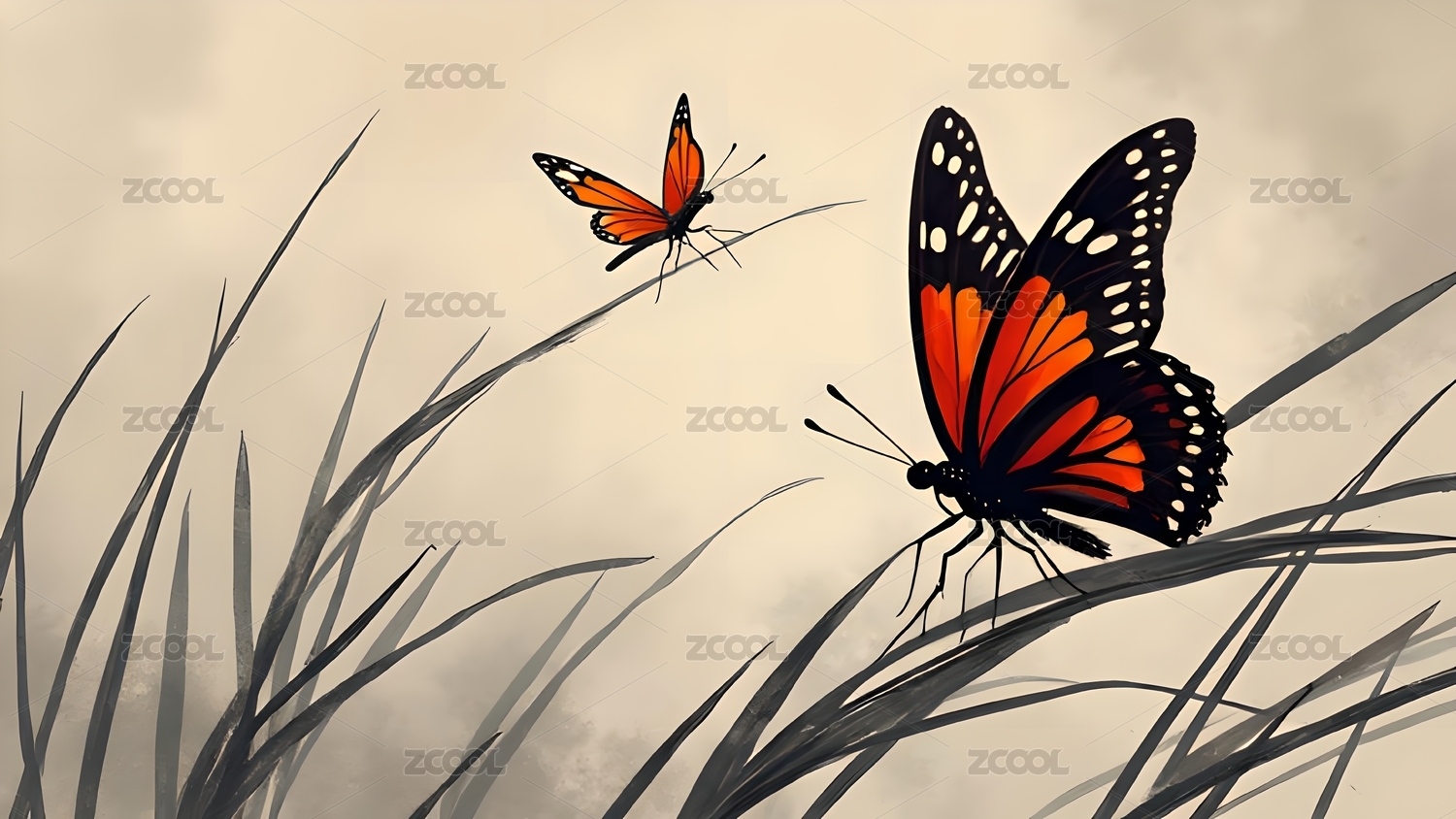 白色的蝴蝶停在芦苇草尖上节气高清插图
