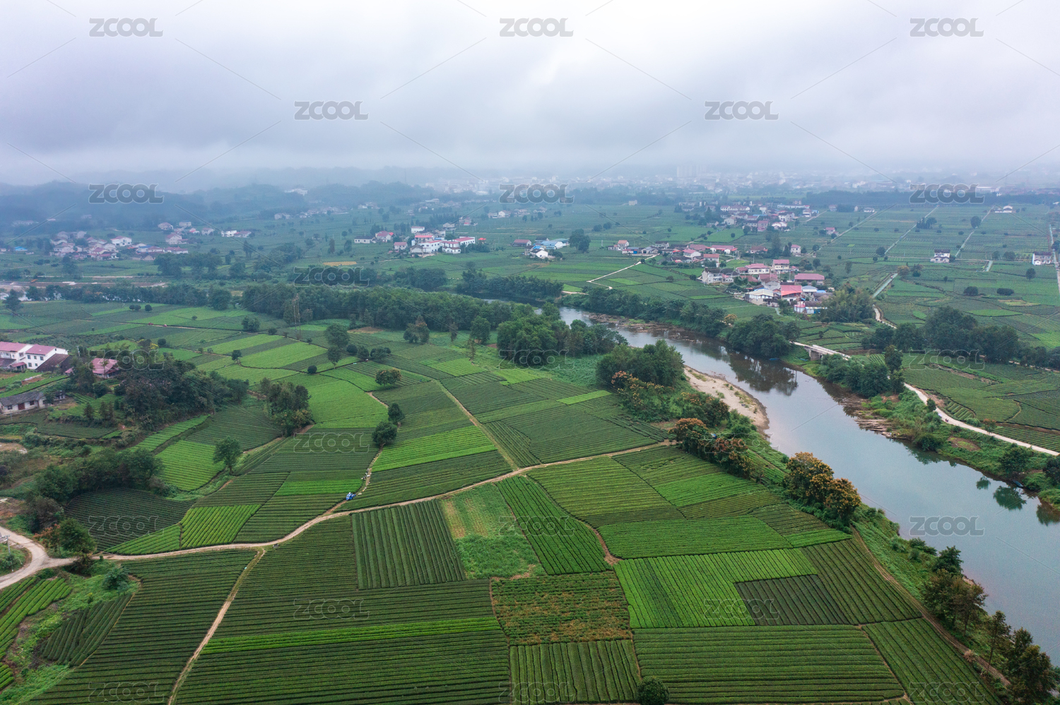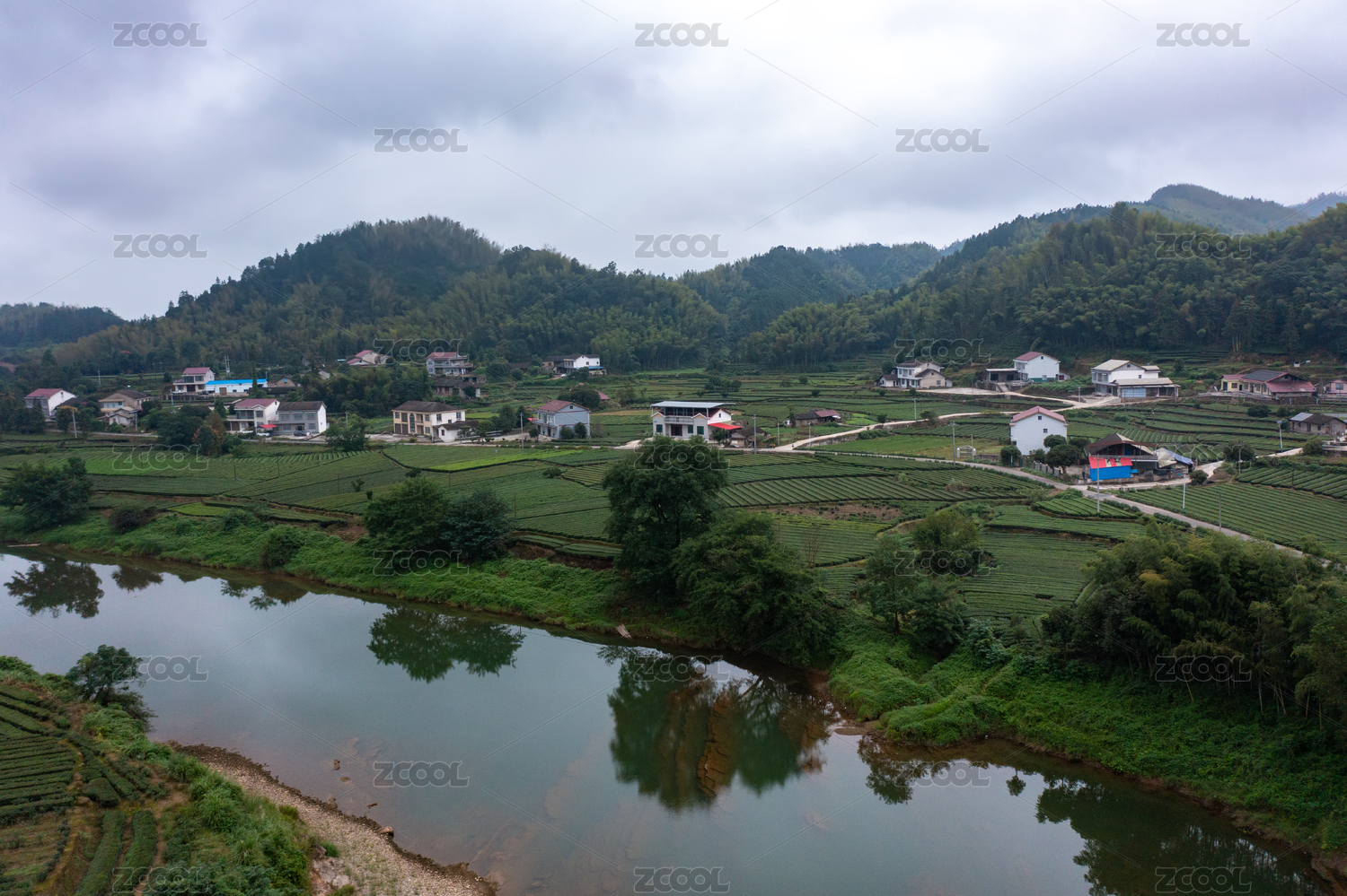 航拍湖南常德桃源茶庵铺镇乡村茶园风光