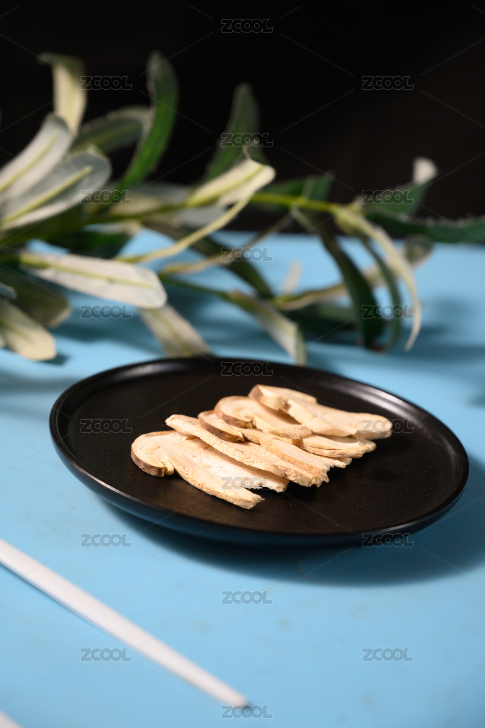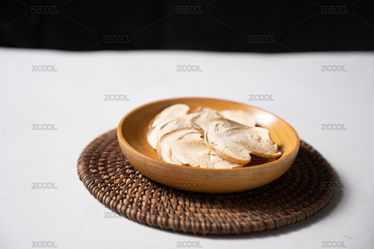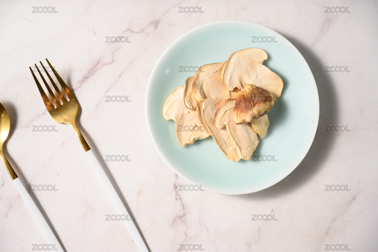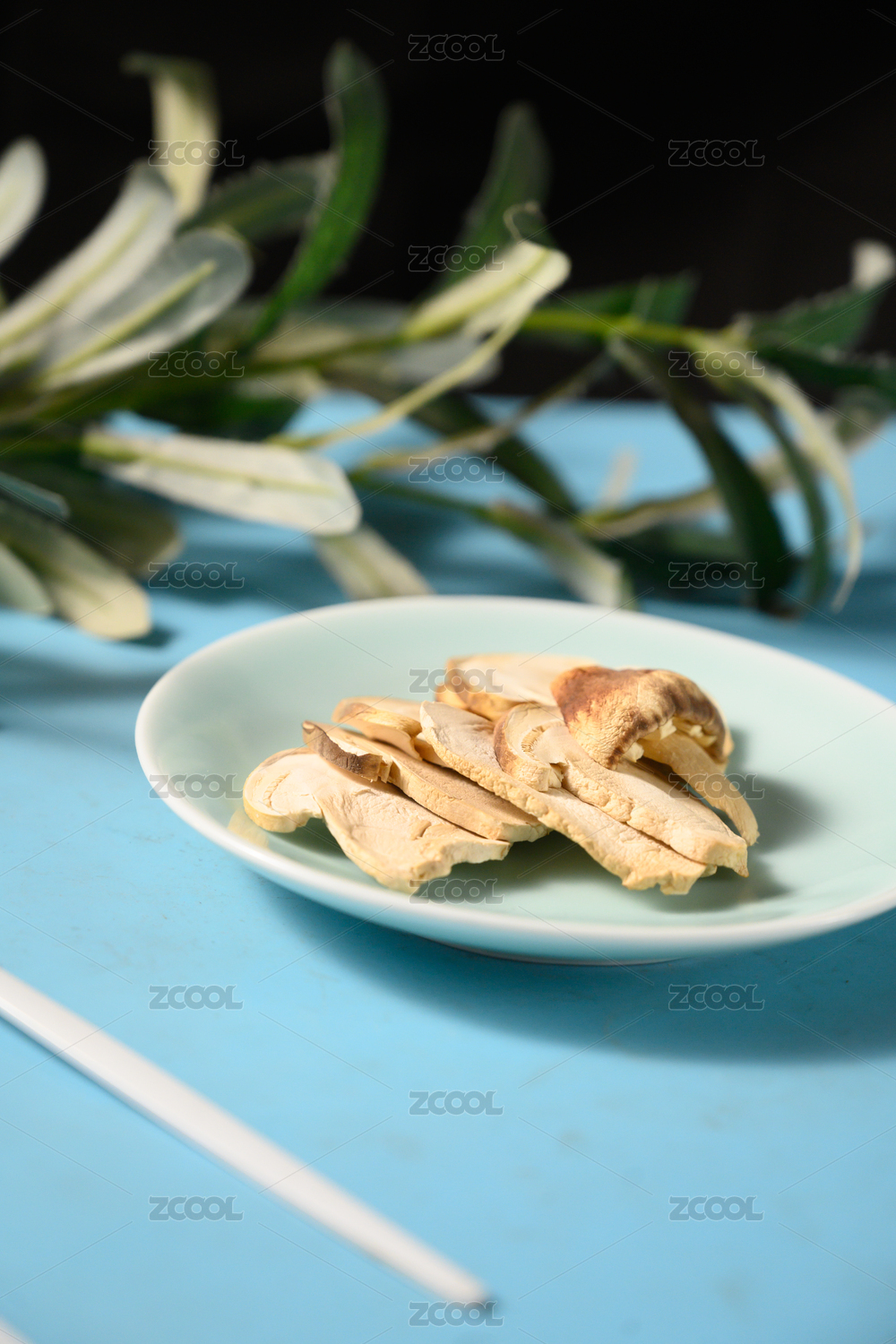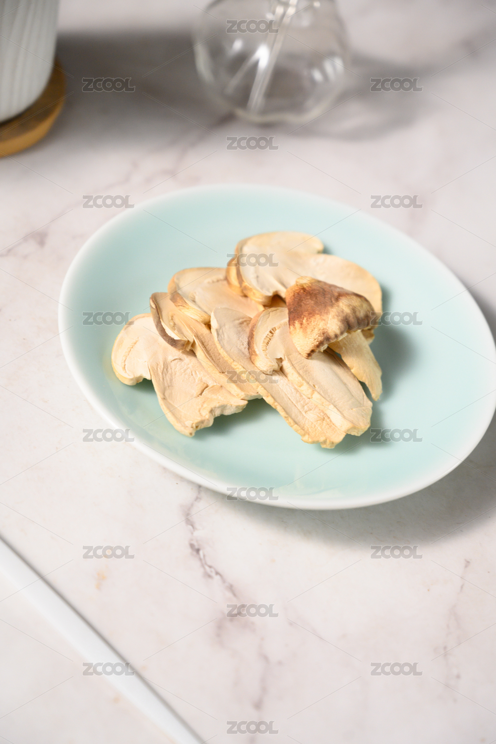 桌面上的盘子里的美味可口的干松茸