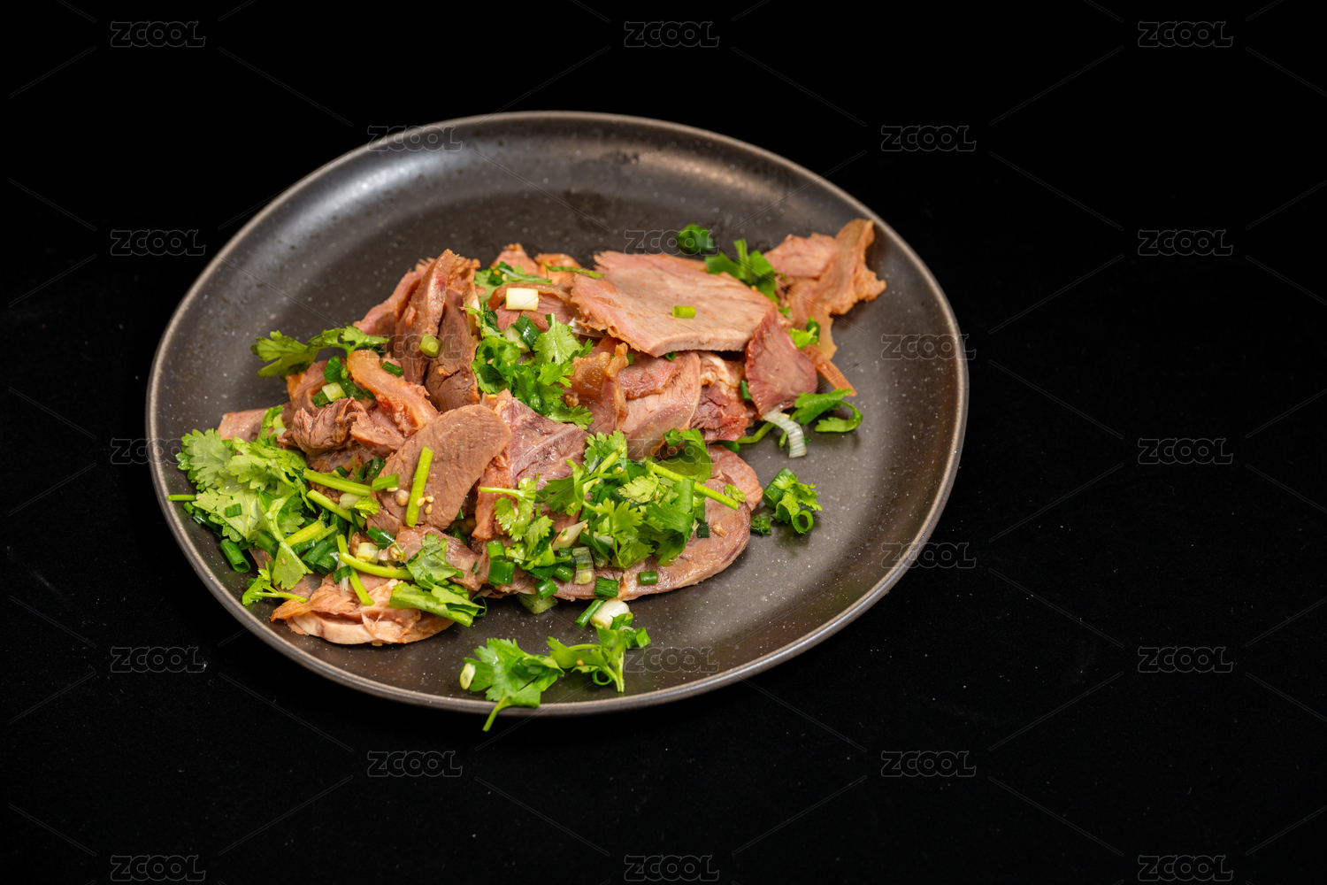 美味的牛肉片配香菜