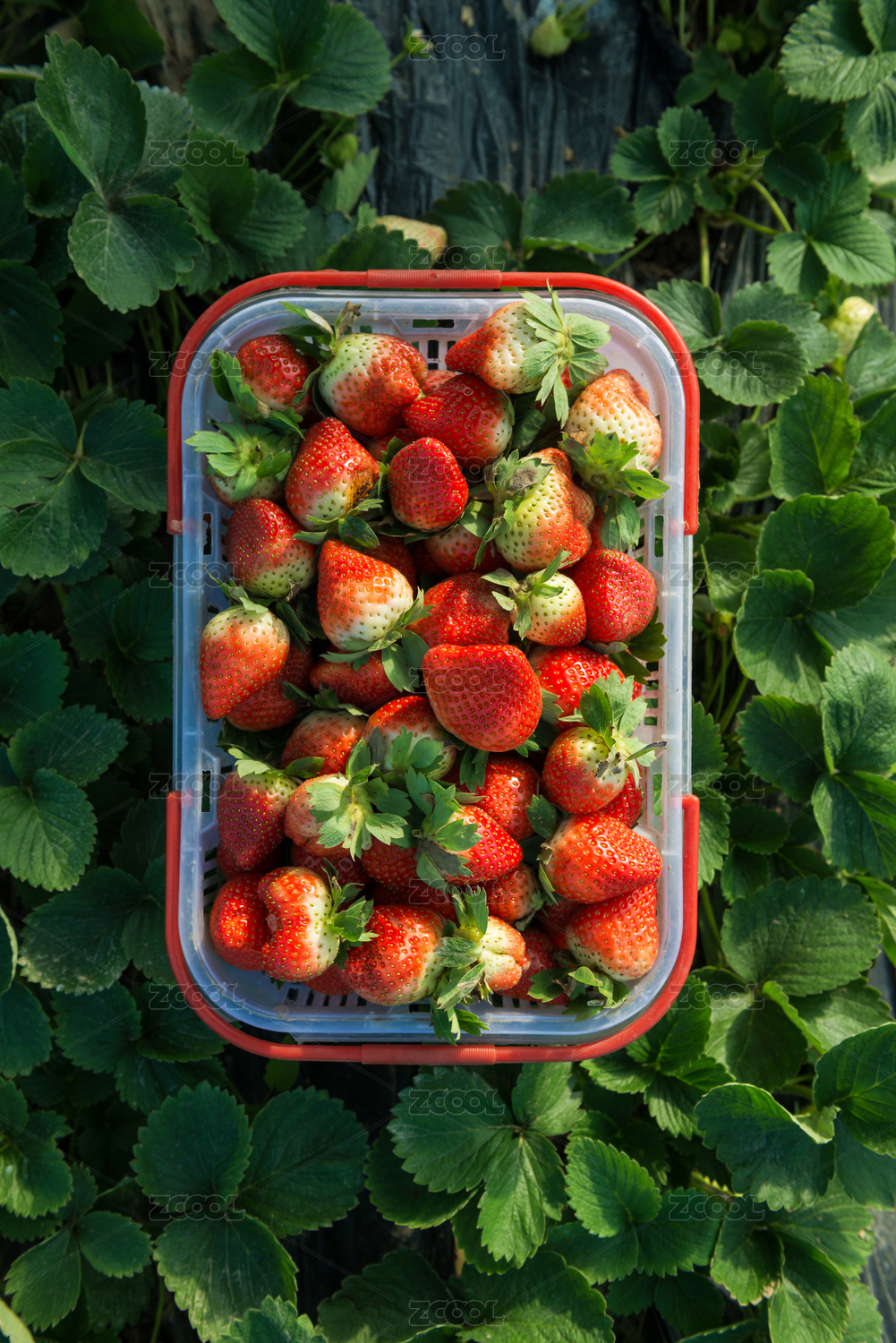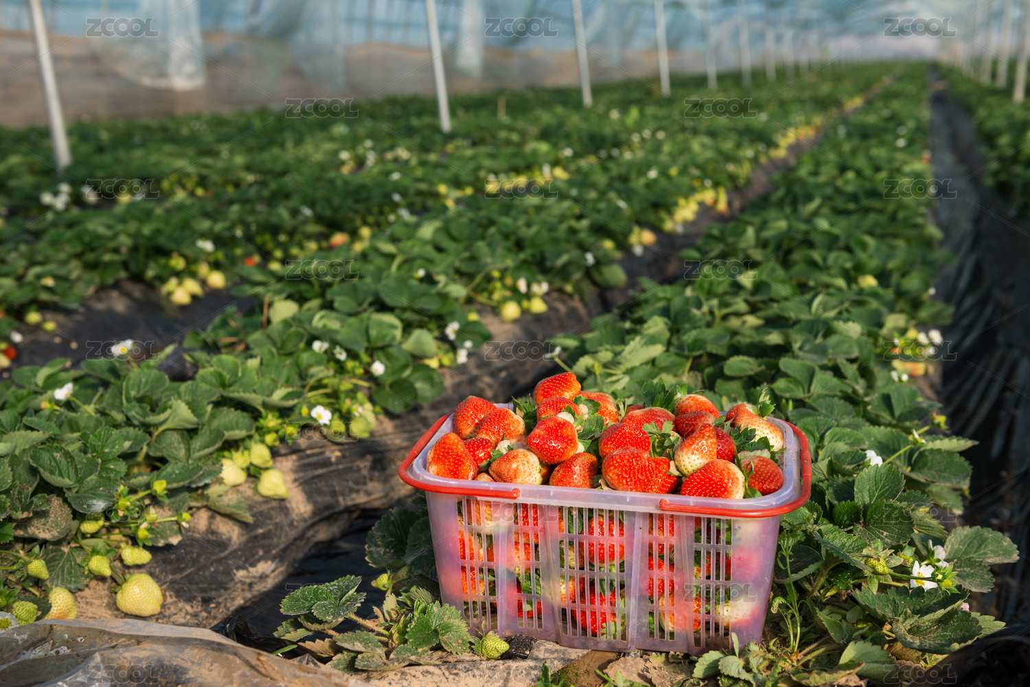 阳光大棚里采摘的新鲜草莓