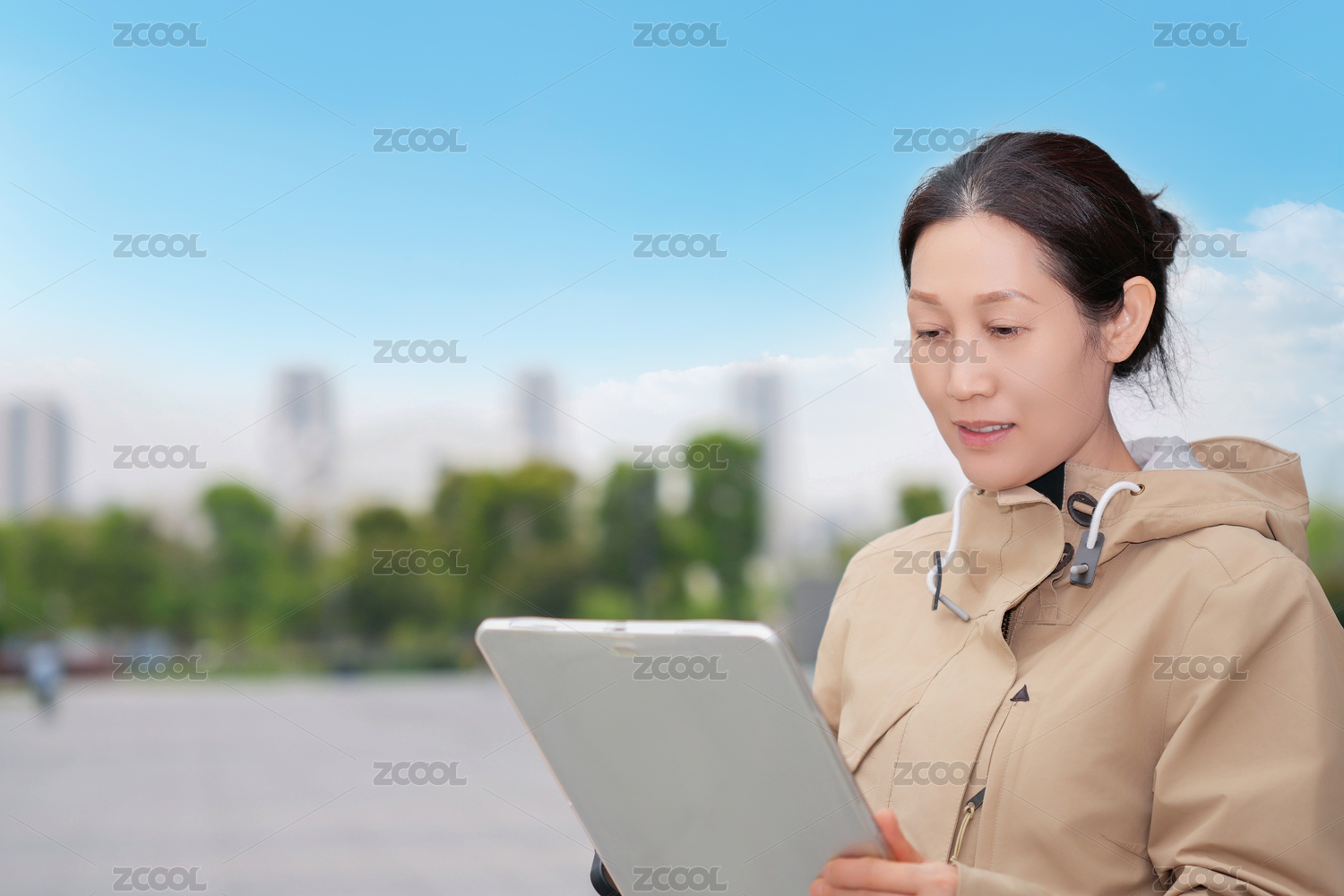 商务女士在使用平板电脑