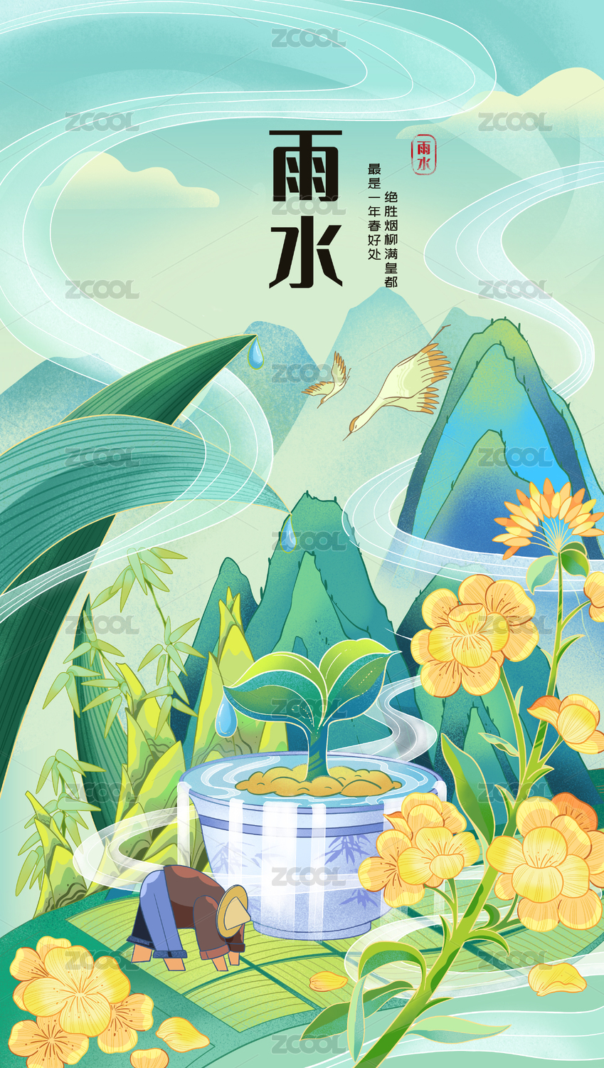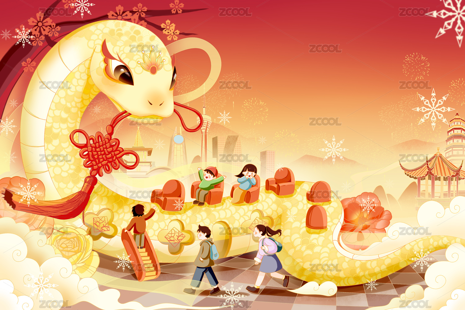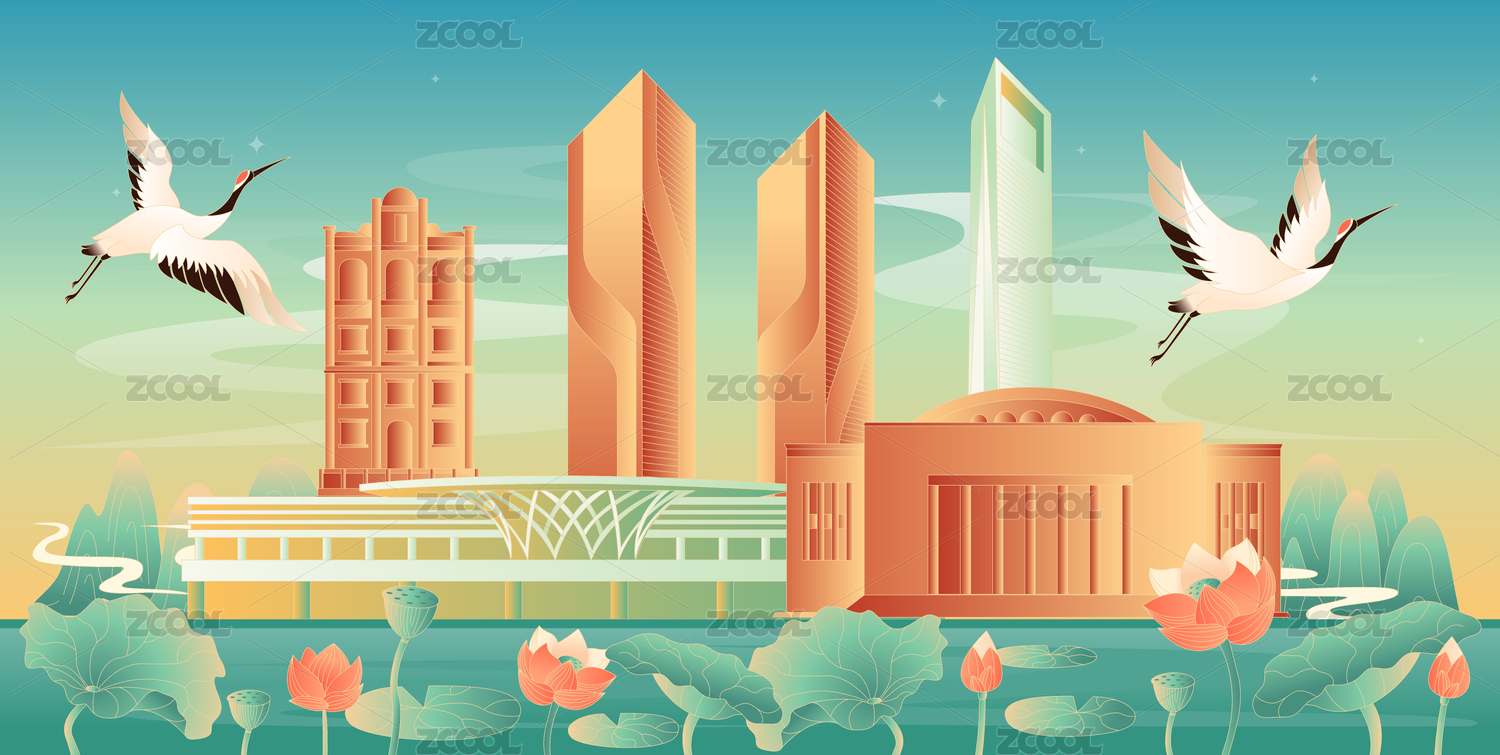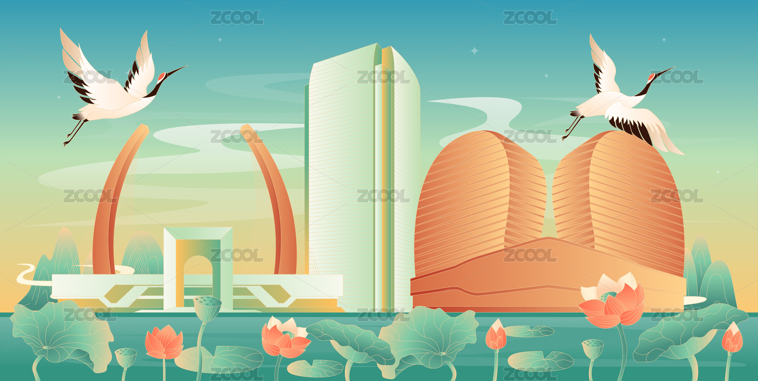 红色渐变大气国潮风插画故宫远山仙鹤祥云