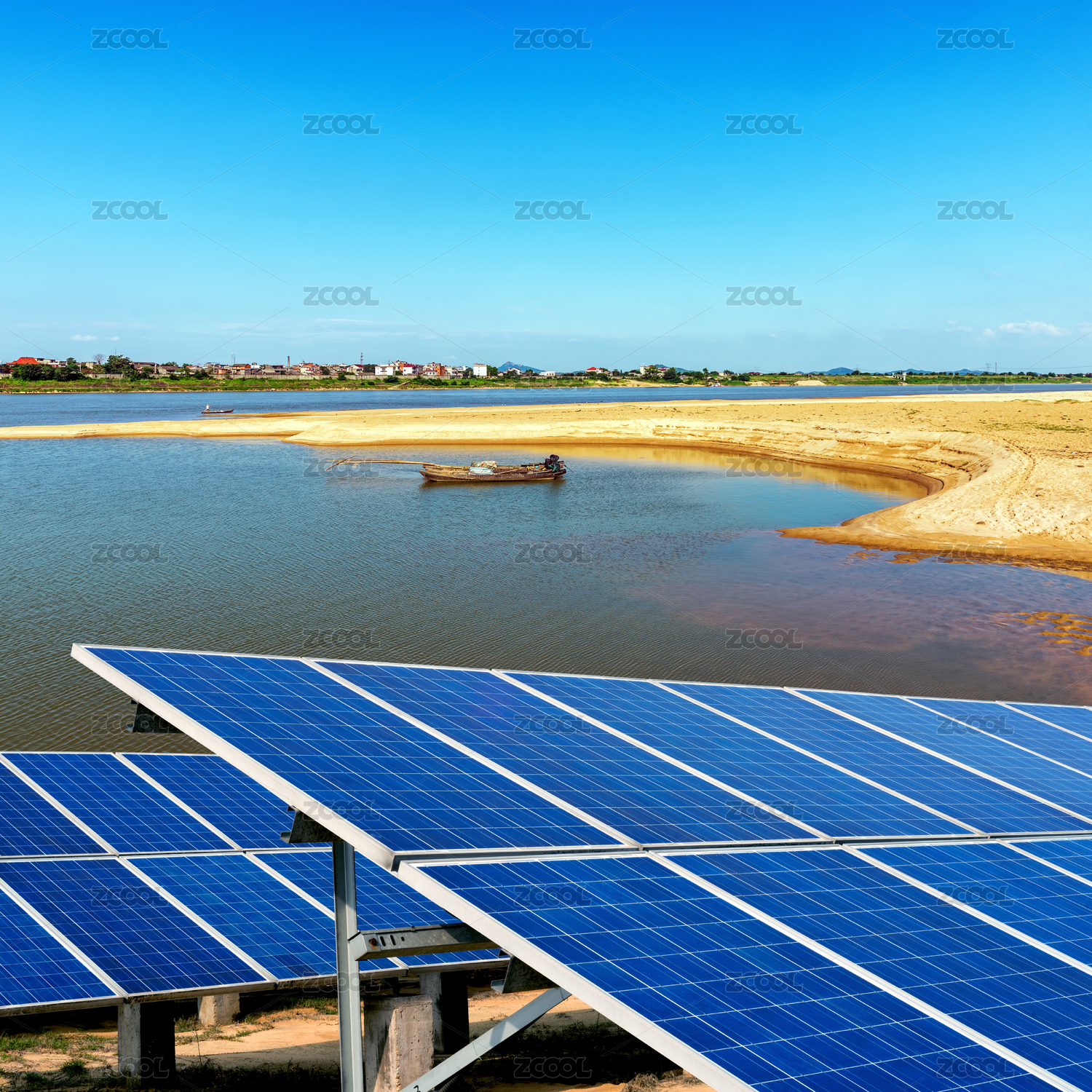 城市天际线与太阳能板