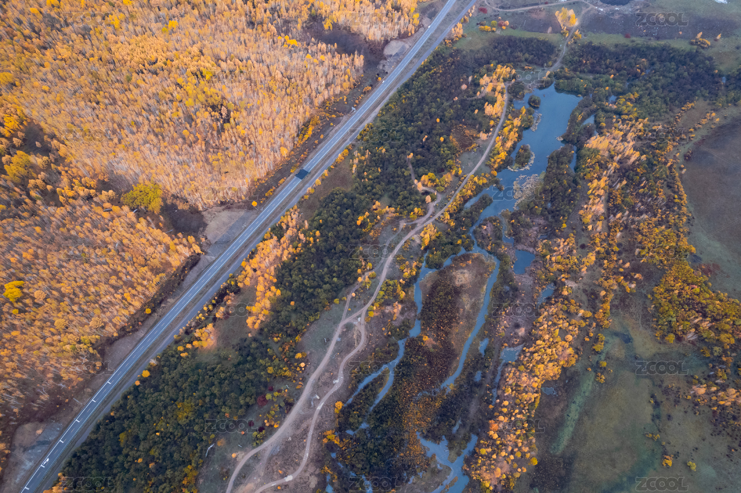 内蒙古呼伦贝尔根白线大兴安岭湿地秋天风景