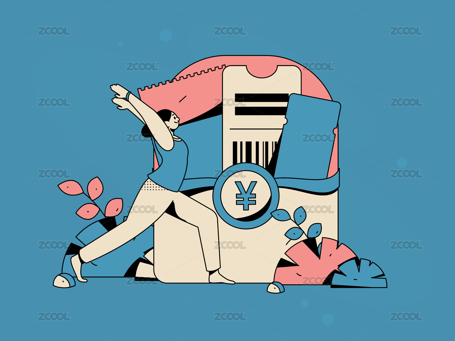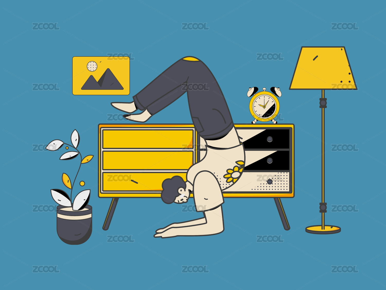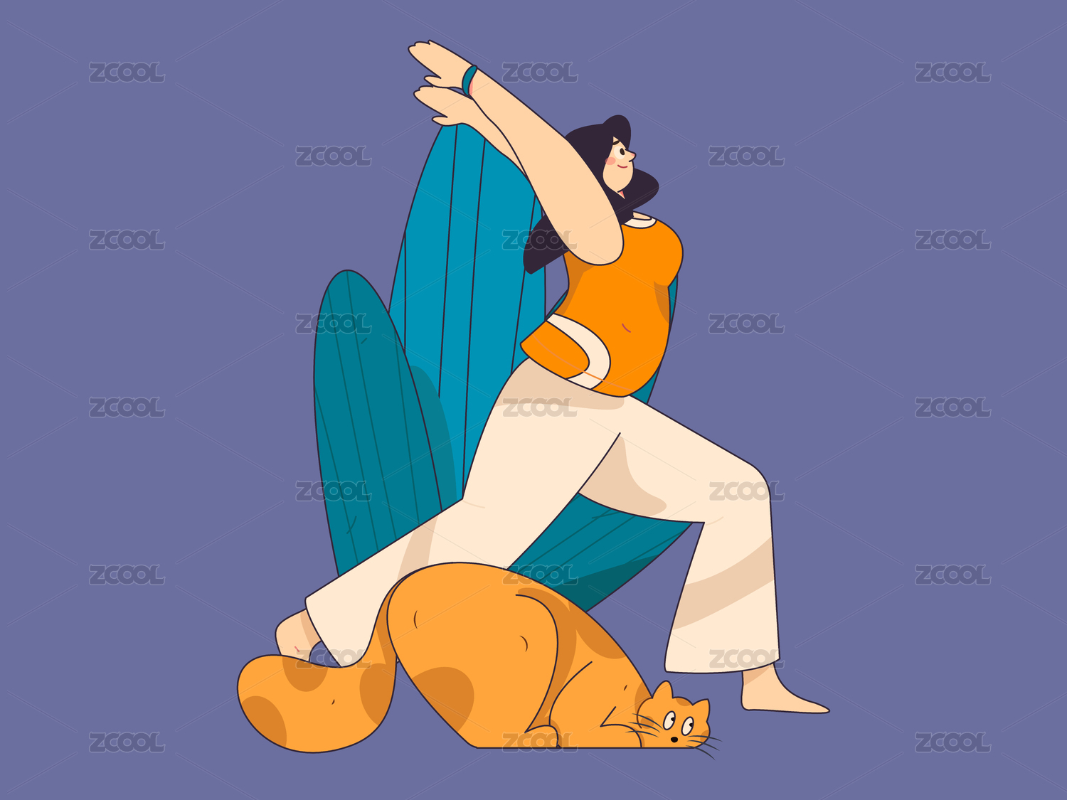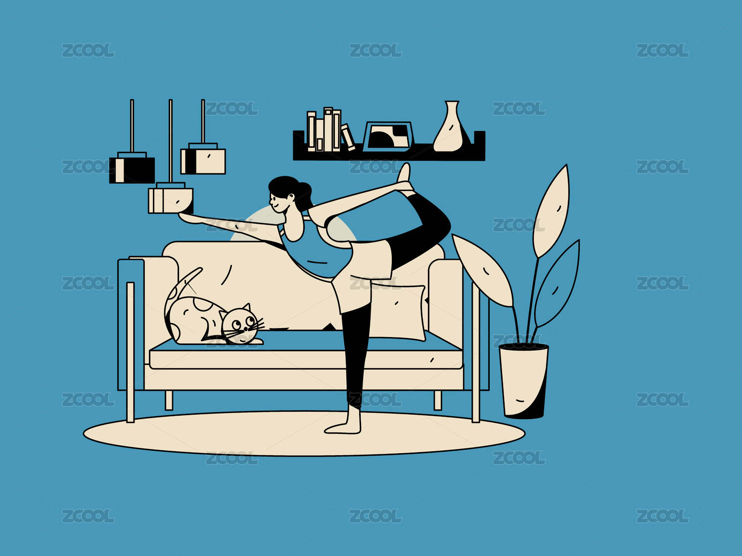 练习瑜伽身心健康扁平矢量人物概念运营手绘